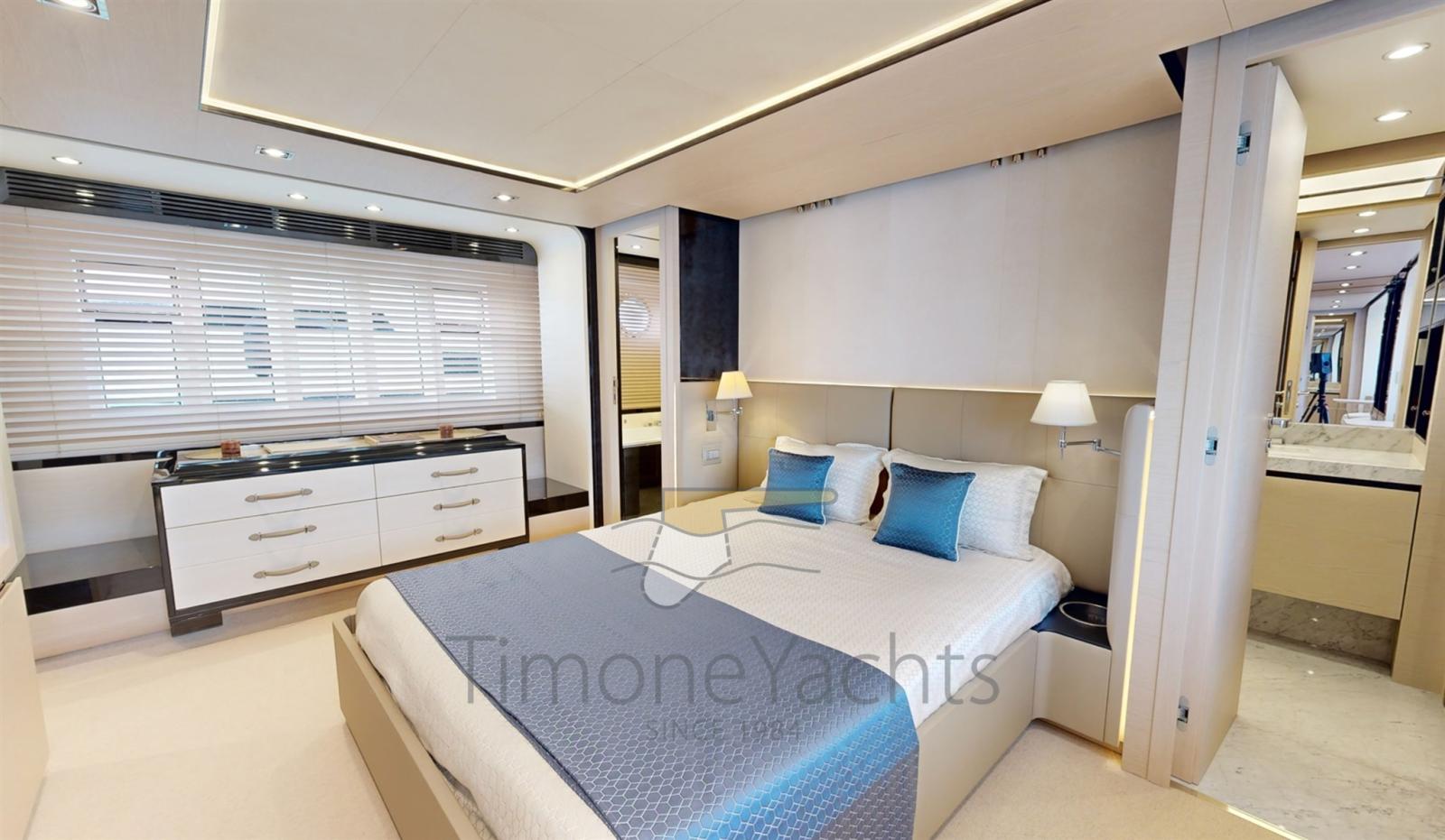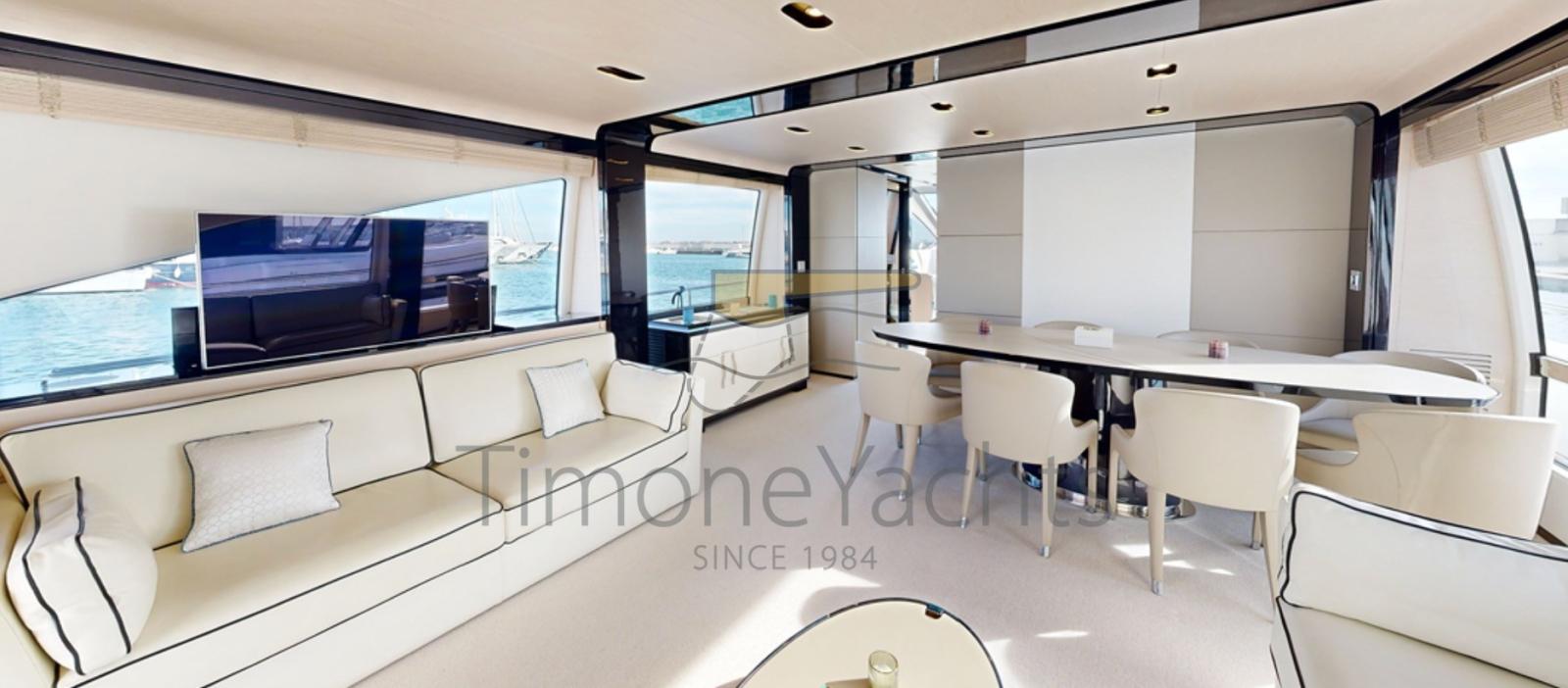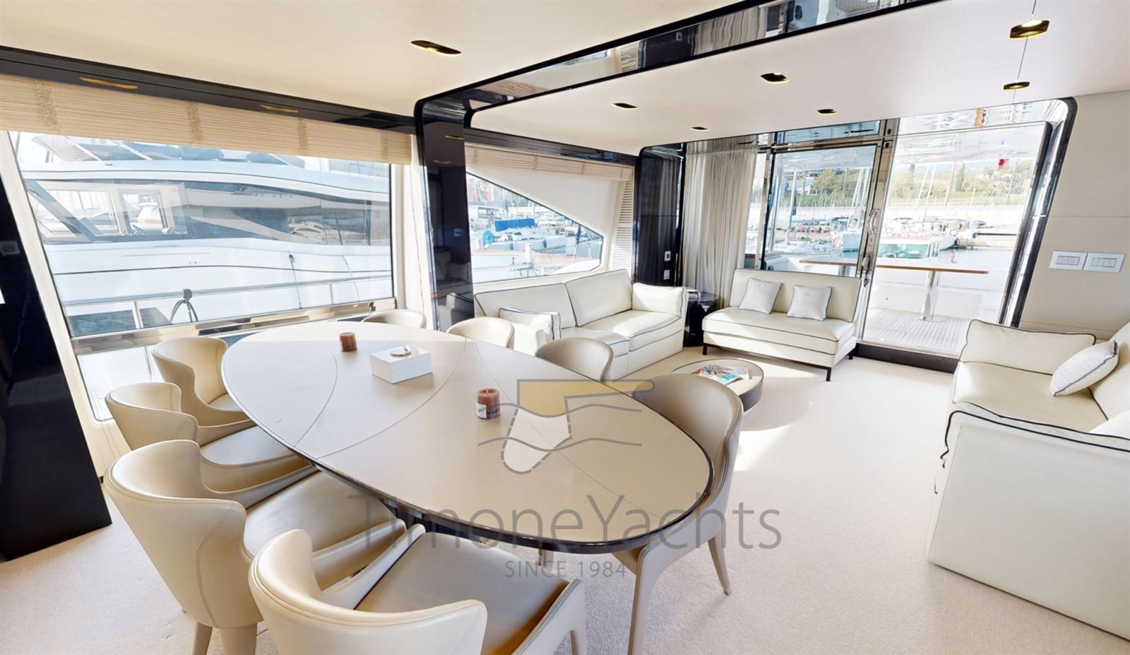 The Azimut 80 was an immediate sales success thanks to its rational layout and generous volumes: a very elegant salon, spacious cabins with light tones, a separate galley with outdoor access, and a gigantic flybridge and foredeck.
