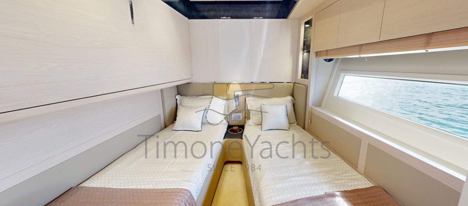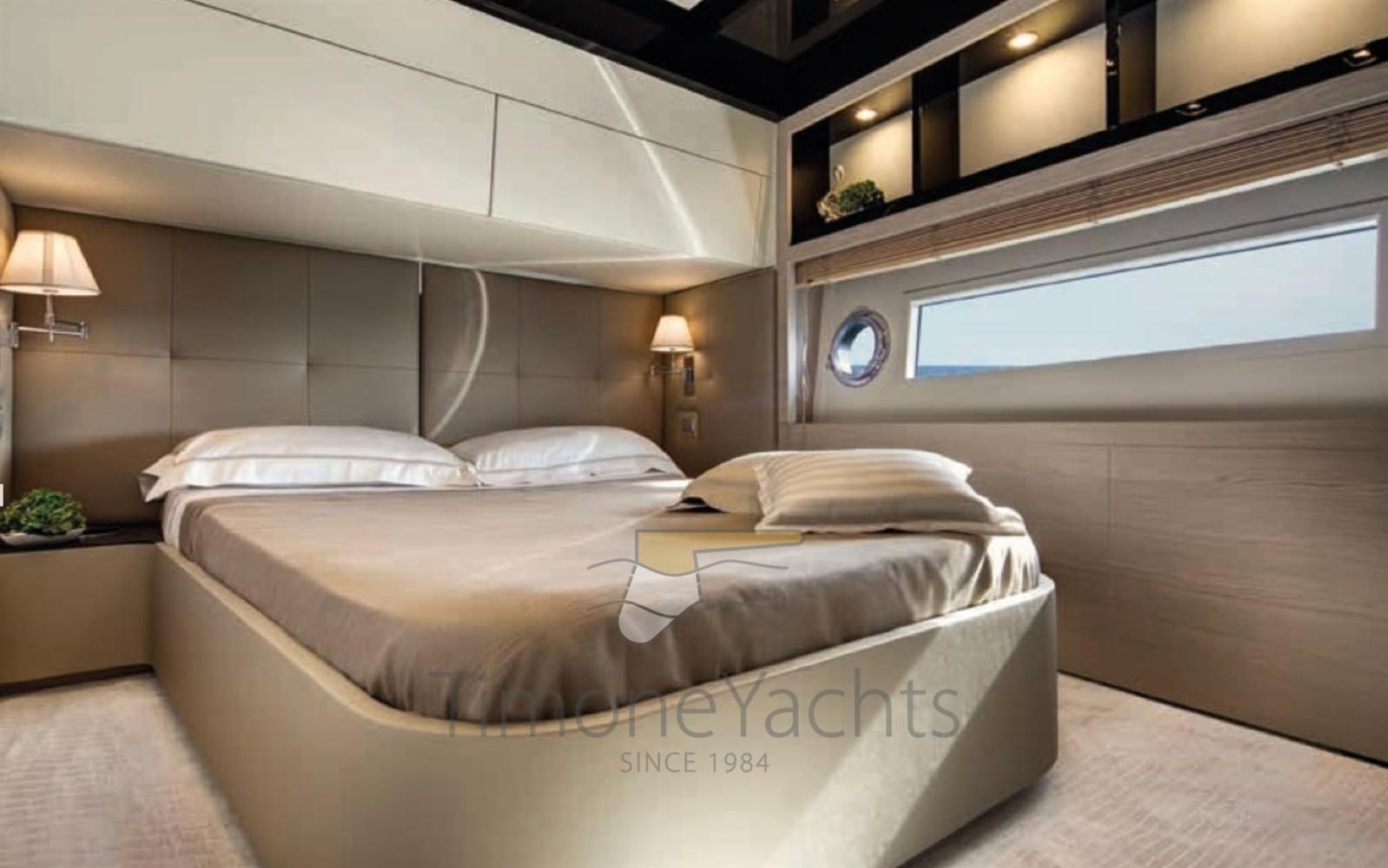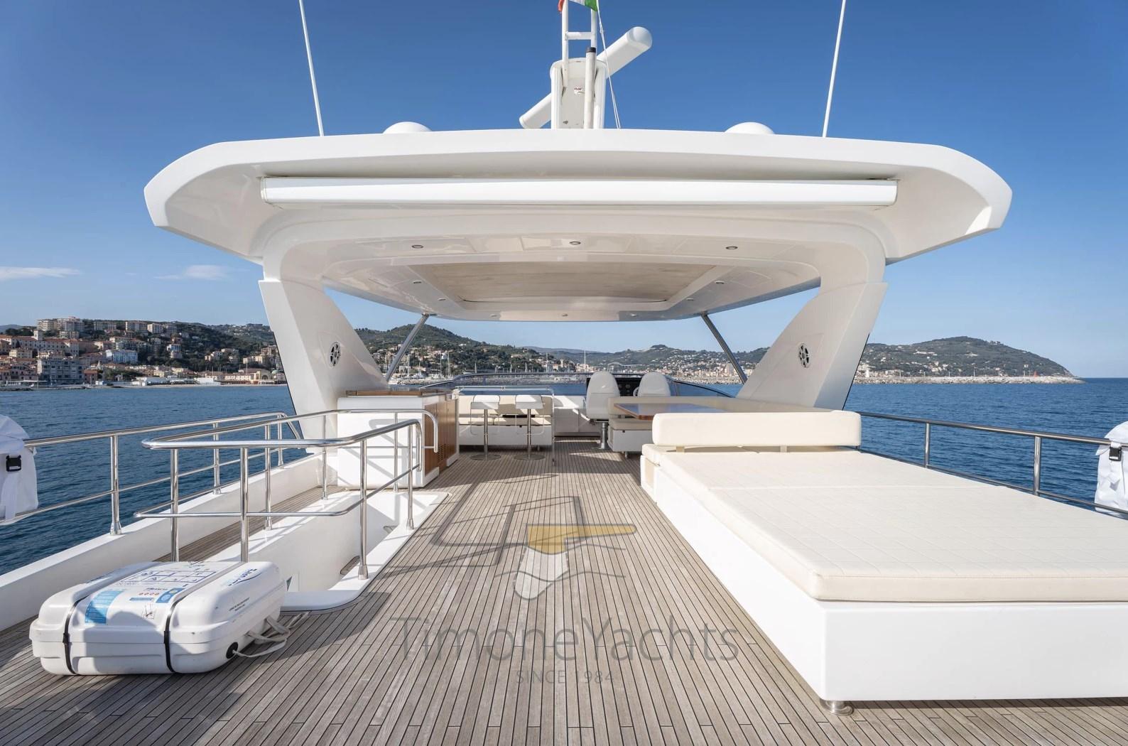 The Azimut 80 was an immediate sales success thanks to its rational layout and generous volumes: a very elegant salon, spacious cabins with light tones, a separate galley with outdoor access, and a gigantic flybridge and foredeck.