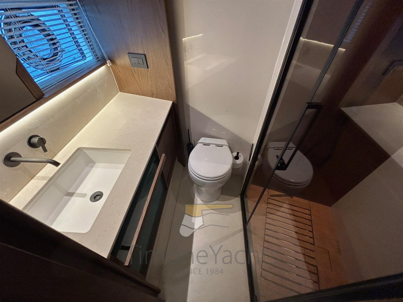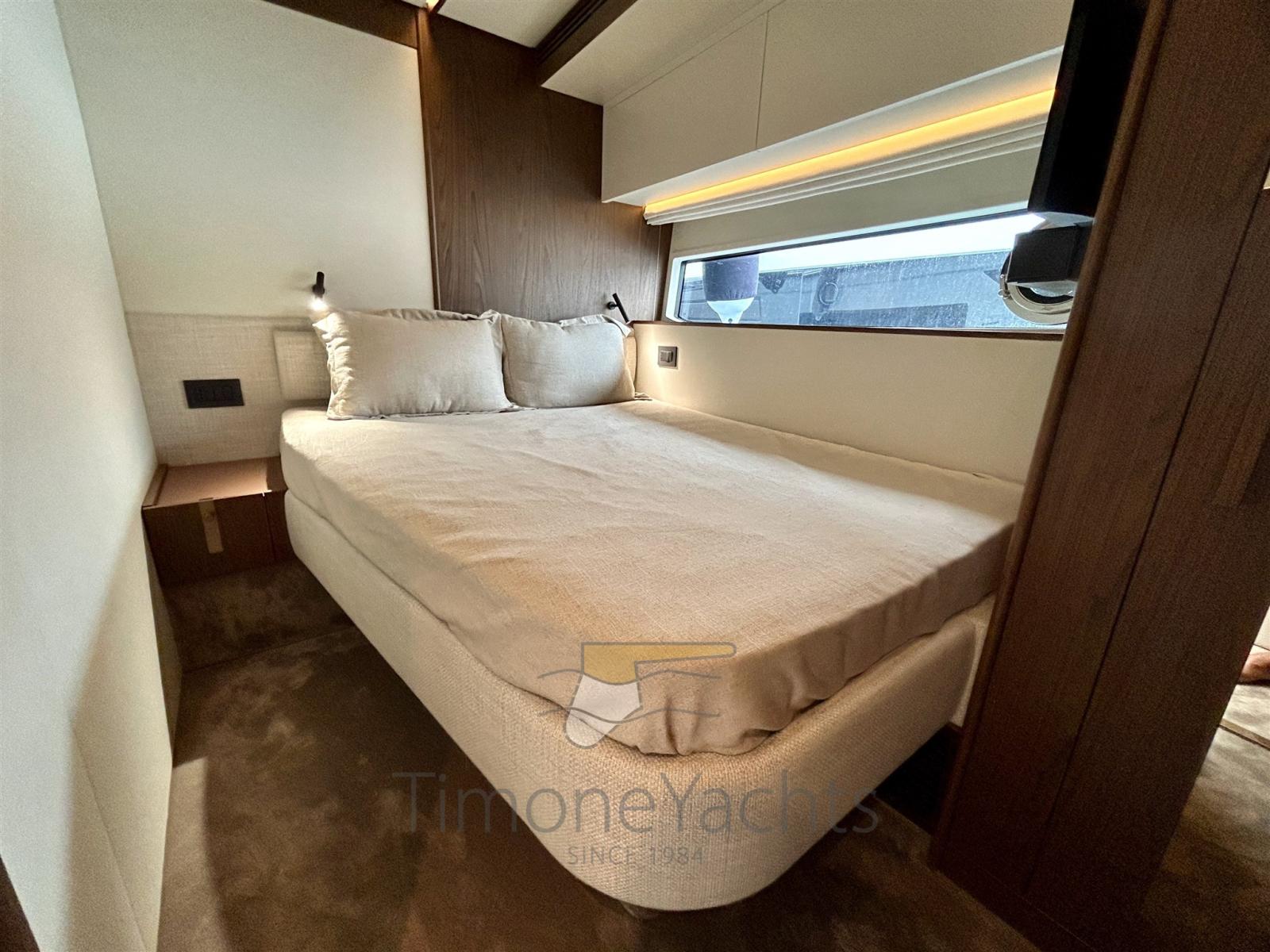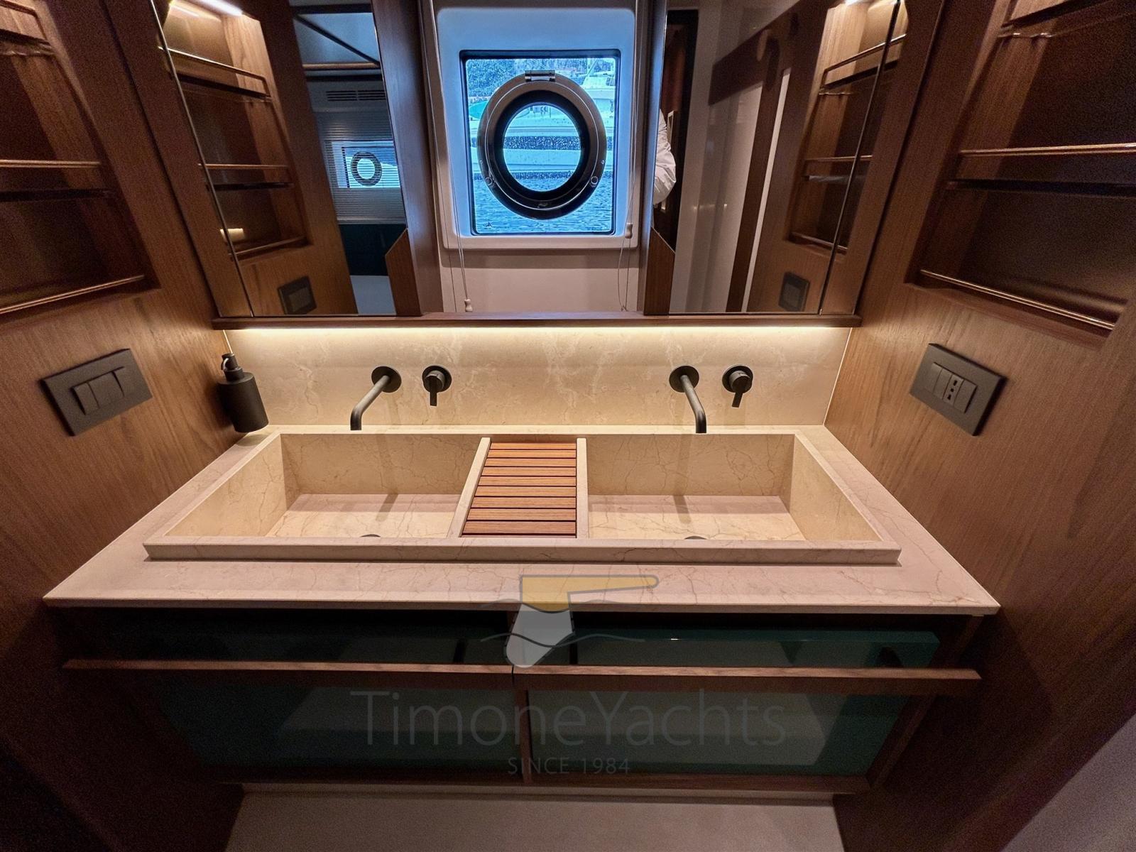 Fume/Gas Detector, Engine Alarm, Bilge Alarm, Alternator, Water pressure pump, Teak Side Decks, Deck Shower, Twin Steering, Directional Spotlight, Hydraulic Flaps, Hard top, Flaps Indicators, Anchor Chain Washdown, Washbasin in the cockpit, Courtesy Lights, Underwater lights, Gangway, Platform, Automatic Bilge Pump, Teak deck, Entry door, Side door, Teak Cockpit, Shorepower connector, Water harbor connector system, Stabilizers (seakeeper NG 16), cockpit table, Horn, Stern Winches, Bow Winches.