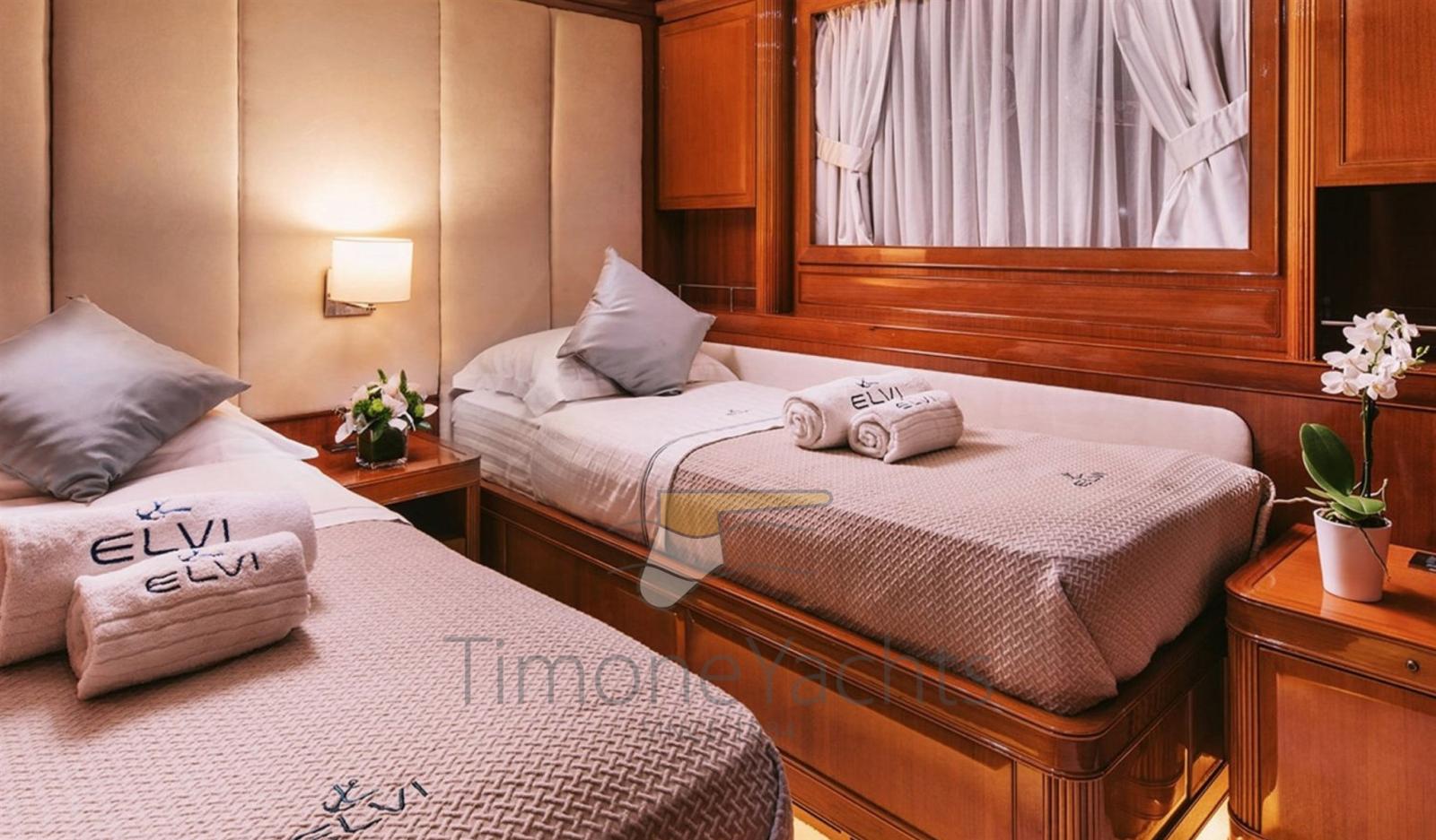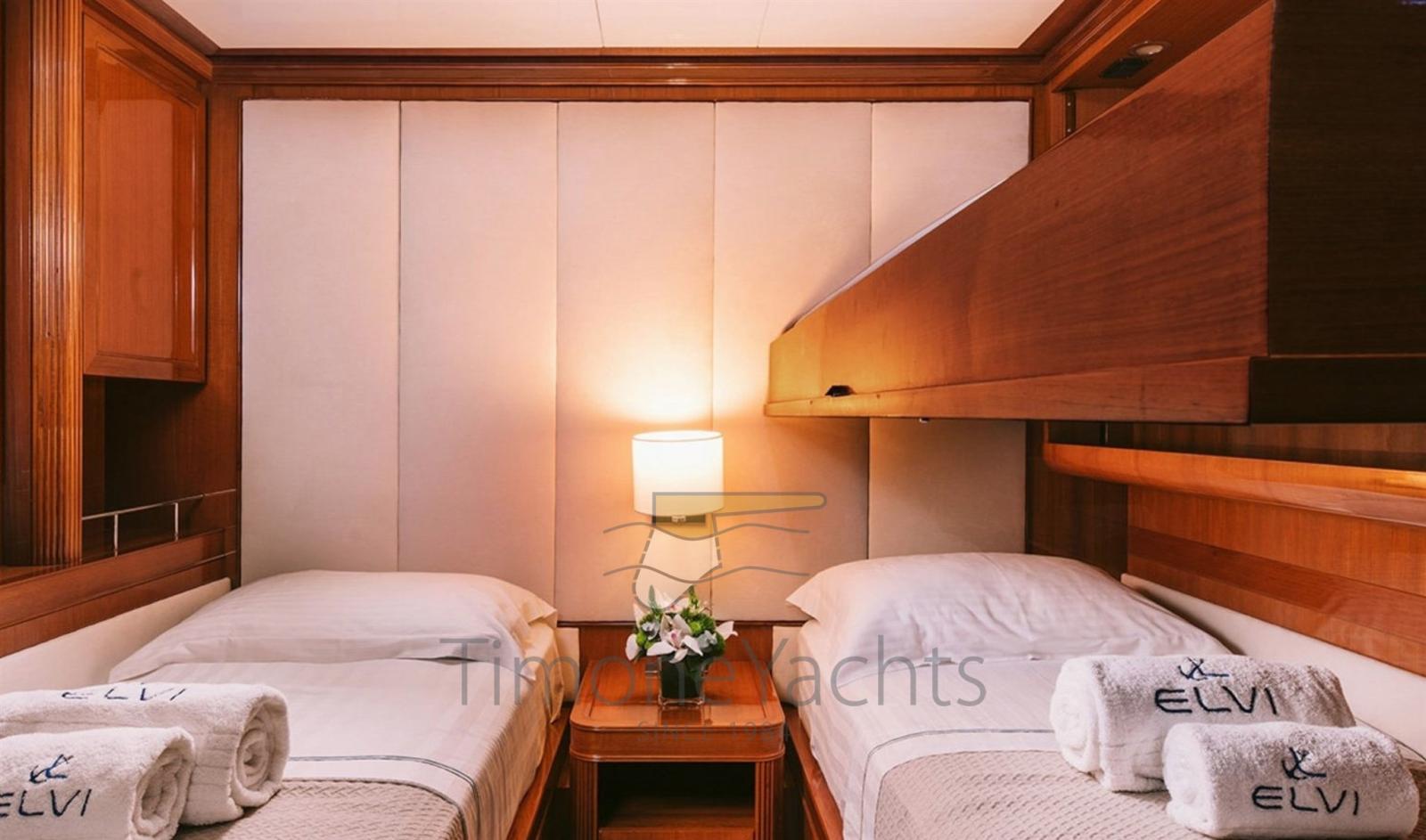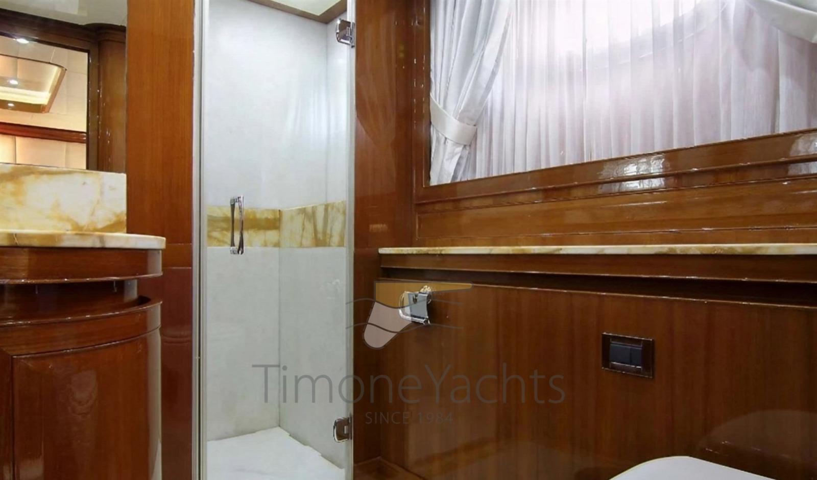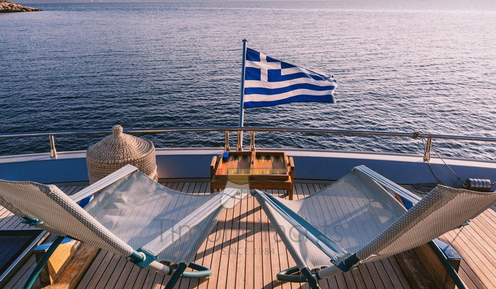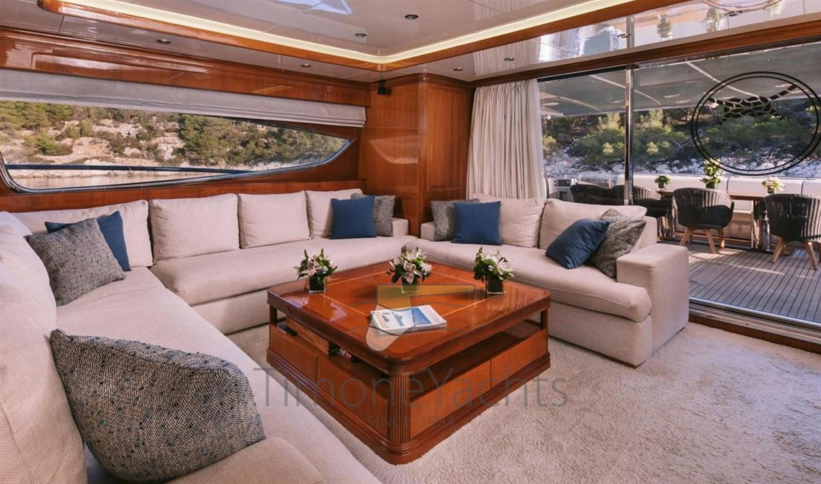 10 Batteries (18 x Varta), Teak Side Decks, Deck Shower, Directional Spotlight, Tender Crane, Davits for tender on fly, Fire Extinguishing System, Flaps Indicators, Anchor Chain Washdown, Courtesy Lights, Underwater lights, Gangway, Teak deck, 2 Side door, Teak Cockpit, swimming ladder, cockpit table, Tender (Grant S 4.30m Yamaha 60 hp), Horn, Stern Winches.