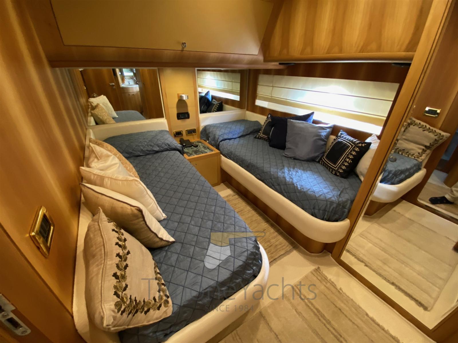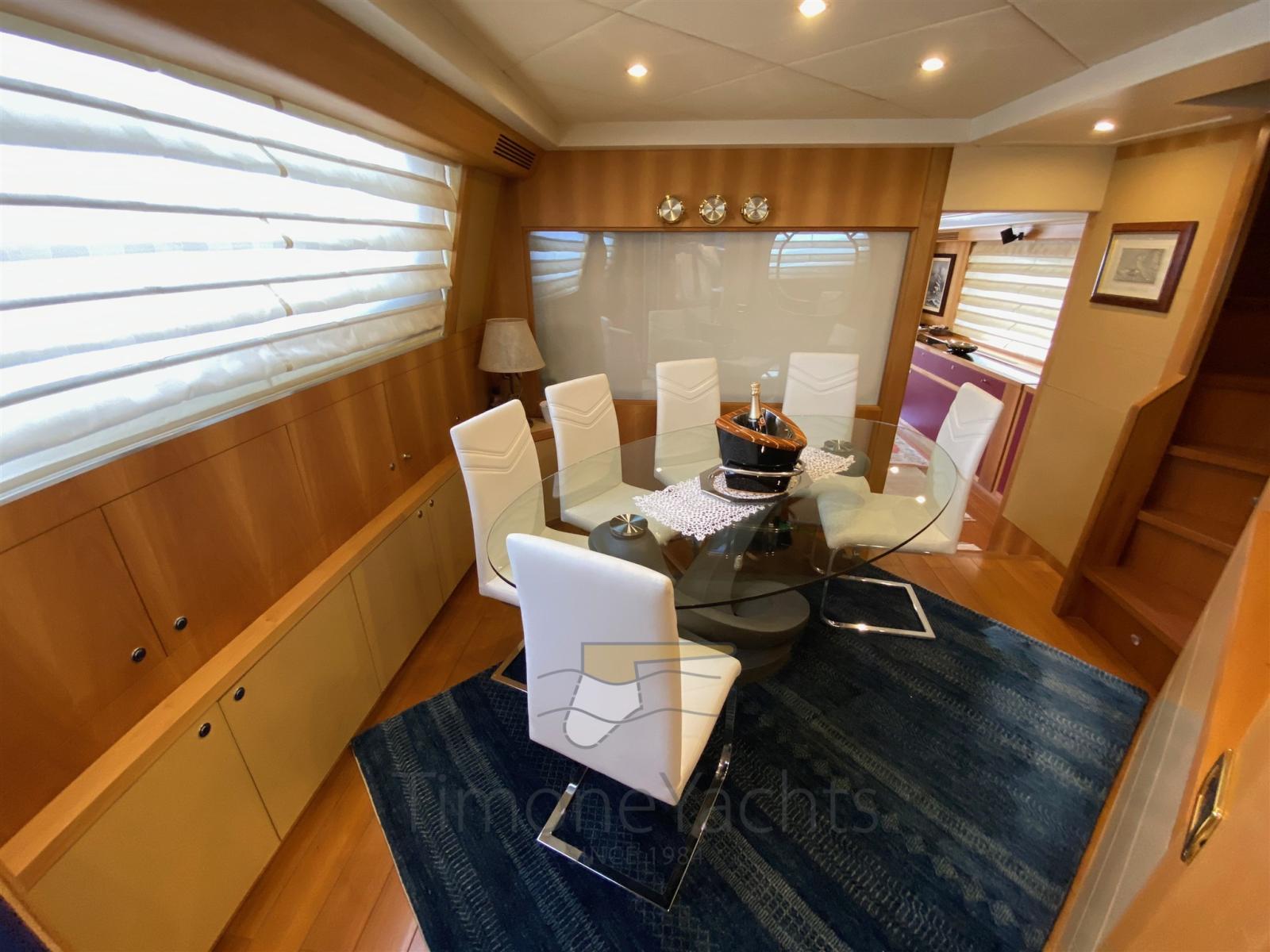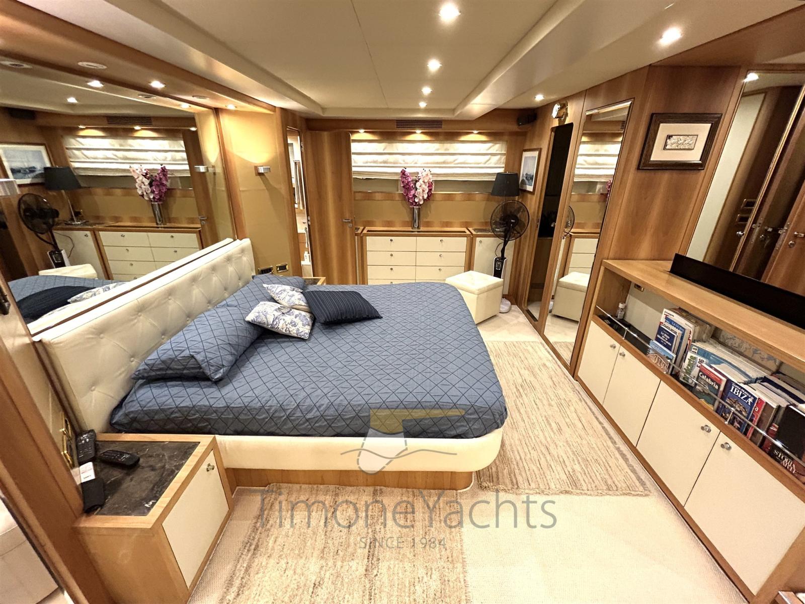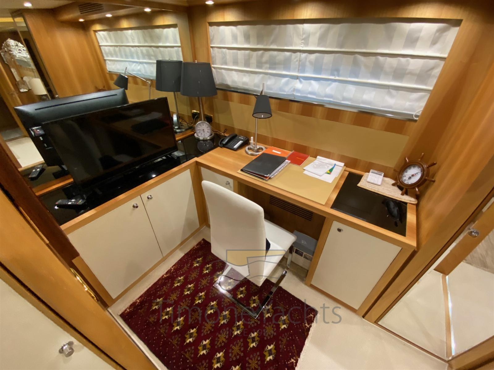 Up/down hydraulic platform at transom realized as a work of art for a more spacey flybridge free from crane astern. Spectacular master cabin amidship out of a 3 guests cabin layout (from origin): the stbd guest cabin area has been partly taken by a loundry/utility room (with washer and dryer with separate units) and partly by the master cabin's office. New teak 2021. New navigation equipment all new 2023. Bidet at each cabin's head + day toilet on main deck. New sets of biminis on fly, afore and astern the rollbar.