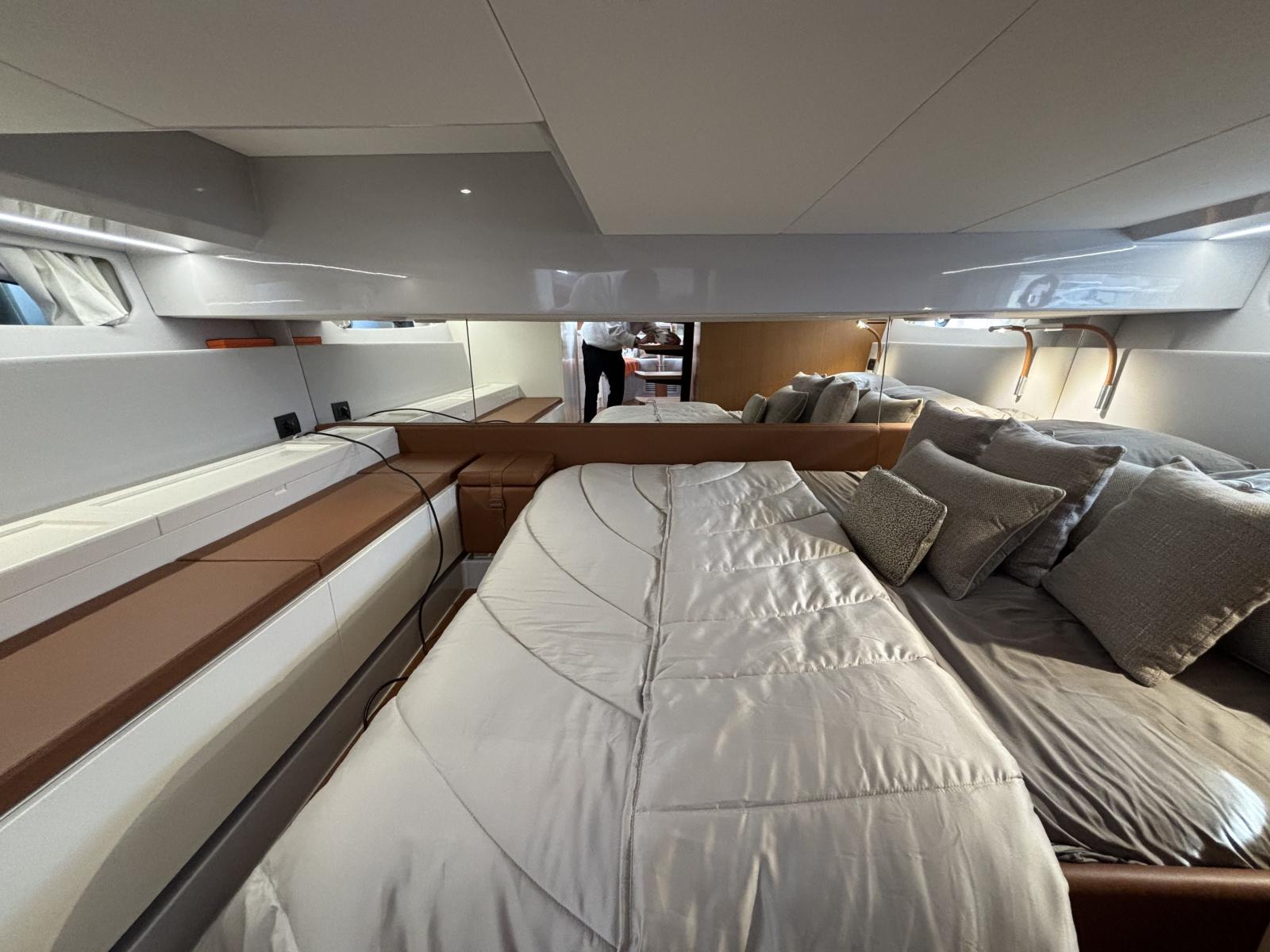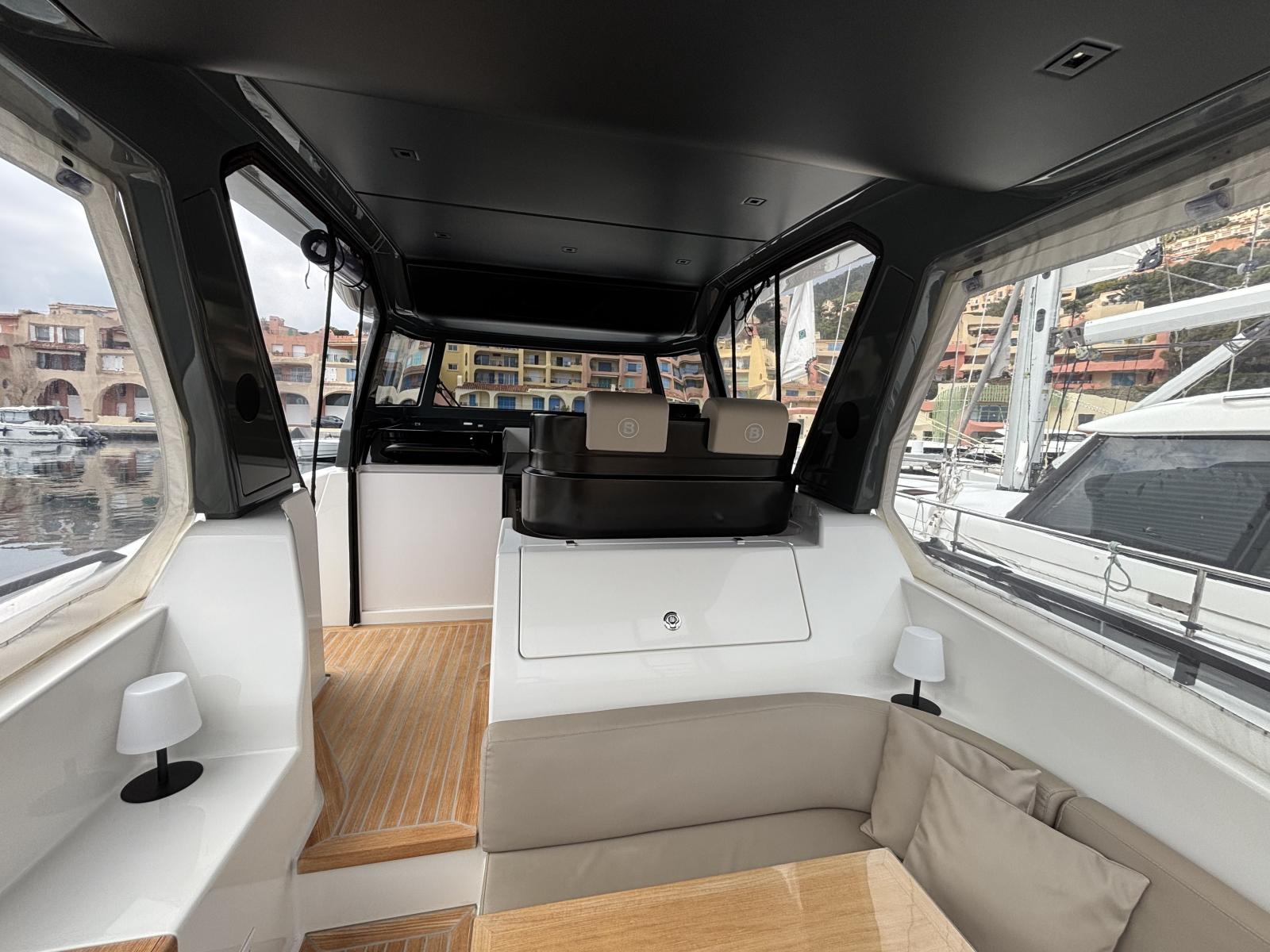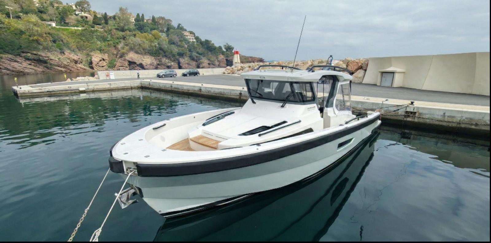 CAP MED is proud to present this outstanding 2021 Bluegame BG42, a premium unit from the Italian Bluegame shipyard (Sanlorenzo Group), designed by Zuccon International Project. A true benchmark in the luxury open yacht segment, the BG42 stands out with its innovative 360° walkaround layout, protected cockpit and exceptional exterior volumes, delivering remarkable comfort both in the Mediterranean and coastal cruising conditions (CE Category B). Powered by 2 x Volvo Penta D6 IPS 650 engines producing 480 HP each and showing only 130 engine hours, this yacht combines strong performance, efficiency and impressive stability. The IPS pod drives paired with the Volvo joystick system provide extremely precise and effortless docking, further enhanced by a Side Power 75 bow thruster for total maneuvering control. The Interceptor trim system automatically optimizes running attitude and improves dynamic comfort at sea. Engines are serviced every two years and benefit from a recent software update. Energy autonomy is a major highlight, centered around a 7 kW onboard generator delivering independent 220V power at anchor or underway, allowing simultaneous use of air conditioning BTU 16000, refrigeration and onboard systems without reliance on shore power. The system is reinforced by 2 x 220W solar panels (2024), a Victron SmartSolar Bluetooth controller, Victron Bluetooth shunt, and a Victron Skylla 24V 80A three-output charger (2025), ensuring optimal energy management and secure battery charging. A 130L/h Idromar watermaker (2025) provides full freshwater autonomy for extended cruising. The new Dometic power management unit (2025) automatically supplies the three refrigerators in either 220V or 24V depending on the available power source, complemented by a Frigonautica stainless-steel outdoor freezer (2024). The deck is fully optimized for outdoor living with a hydraulic gangway and submersible bathing platform controlled via stainless Opacmare panels (2025), full Crystal cockpit enclosure (2024) with side sunshade panels, a 5 kW Webasto exterior heating system for all-season comfort, wireless Lewmar chain counter remote for safe anchoring, and electric winches both forward and aft for effortless mooring operations. The interior, redesigned by Studio Souchon — the same design firm collaborating with Sanlorenzo — offers a refined atmosphere with premium finishes, an electric adjustable saloon table, adaptive lighting, and a master cabin layout engineered to reduce rolling sensation thanks to its orientation, featuring elegant Alcantara details. Meticulously maintained and turnkey, this Bluegame BG42 is configured for extended cruising with enhanced autonomy and a level of equipment rarely found on the market.