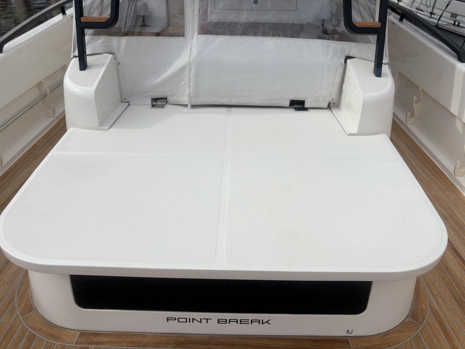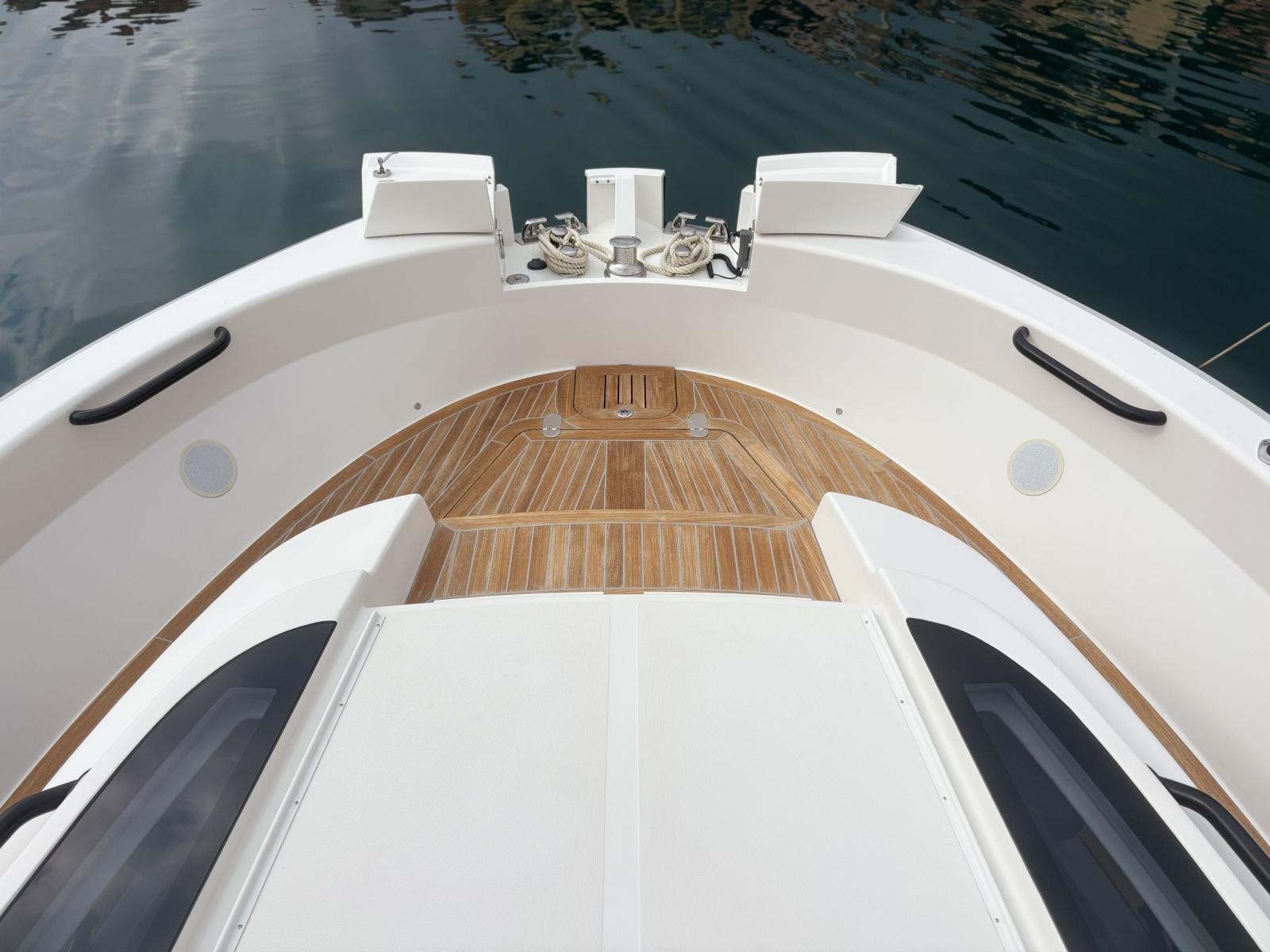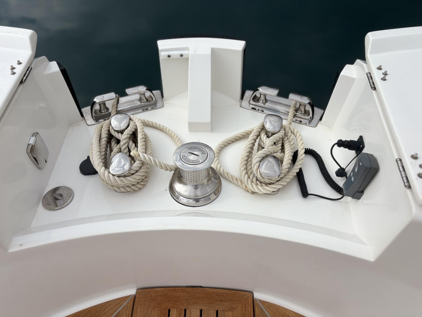Premium deck setup focused on autonomy and ease of use: hydraulic gangway and hydraulic bathing platform operated via Opacmare stainless control panels (2025), delivering precision, reliability and great ergonomics. Full cockpit enclosure with Crystal clear window covers (2024) plus side shade panels (2024) for complete protection. Anchoring is simplified with the wireless Lewmar chain counter remote control. A highly desirable package for long stays at anchor, effortless daily use and strong market appeal. Bimini with sunshade panels supported by carbon poles covering both forward and aft areas