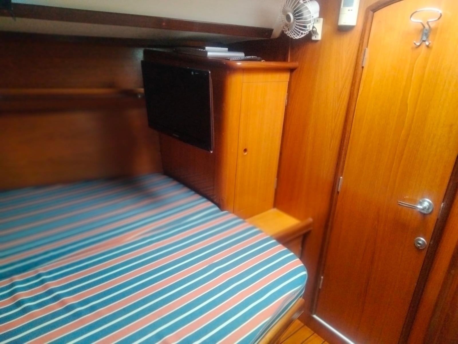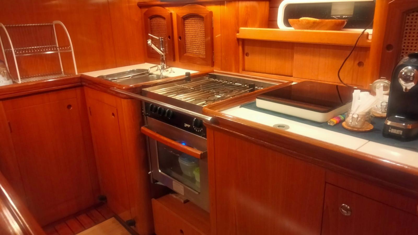 Engine Alarm, Anchor (con 70m di catena sostituita 2020), Water pressure pump, 7 Batteries (sostituite 2020), Teak Side Decks (da rivedere), Special Colour (scafo blu), Deck Shower, Twin Steering, Bow Thruster (Max Power), Courtesy Lights, Manual Bilge Pump, Entry door, Teak Cockpit (in buone condizioni), Shorepower connector, Water harbor connector system, Voltage Rectifier, Electric Windlass, Strand rigging (sostituito nel 2010), swimming ladder, Outboard Engine Support Bracket, cockpit table, 2 Winch (da 44), 4 Winch Electric (2 da 66 e 2 da 44).