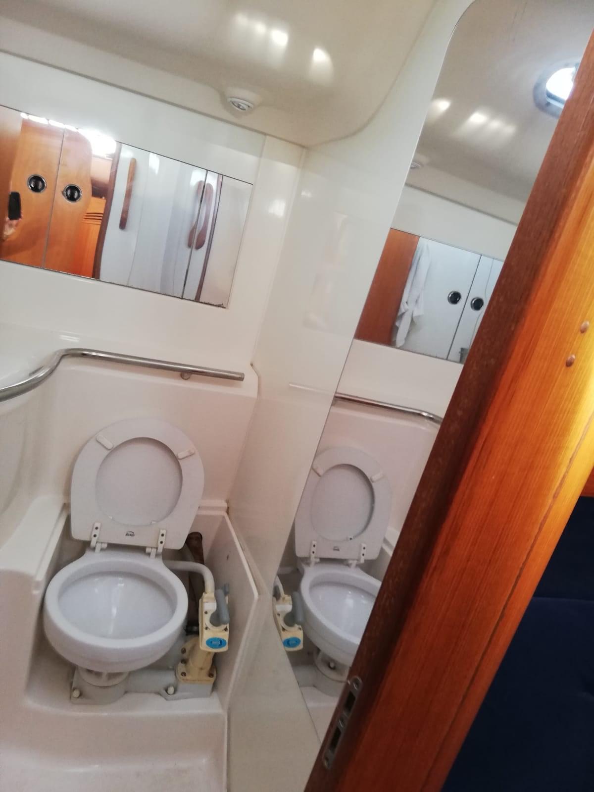 Engine Alarm, 2 Anchor (+ ancora di rispetto + 50 m di catena), Special Colour (blu), Deck Shower, Wind Generator (eolico JRC), Solar panels, Platform, Automatic Bilge Pump, Teak Cockpit, Shorepower connector, Water harbor connector system, Electric Windlass, Rod rigging (originale), swimming ladder, Outboard Engine Support Bracket, cockpit table, Tender, 4 Winch, 2 Winch Electric (del fiocco).
