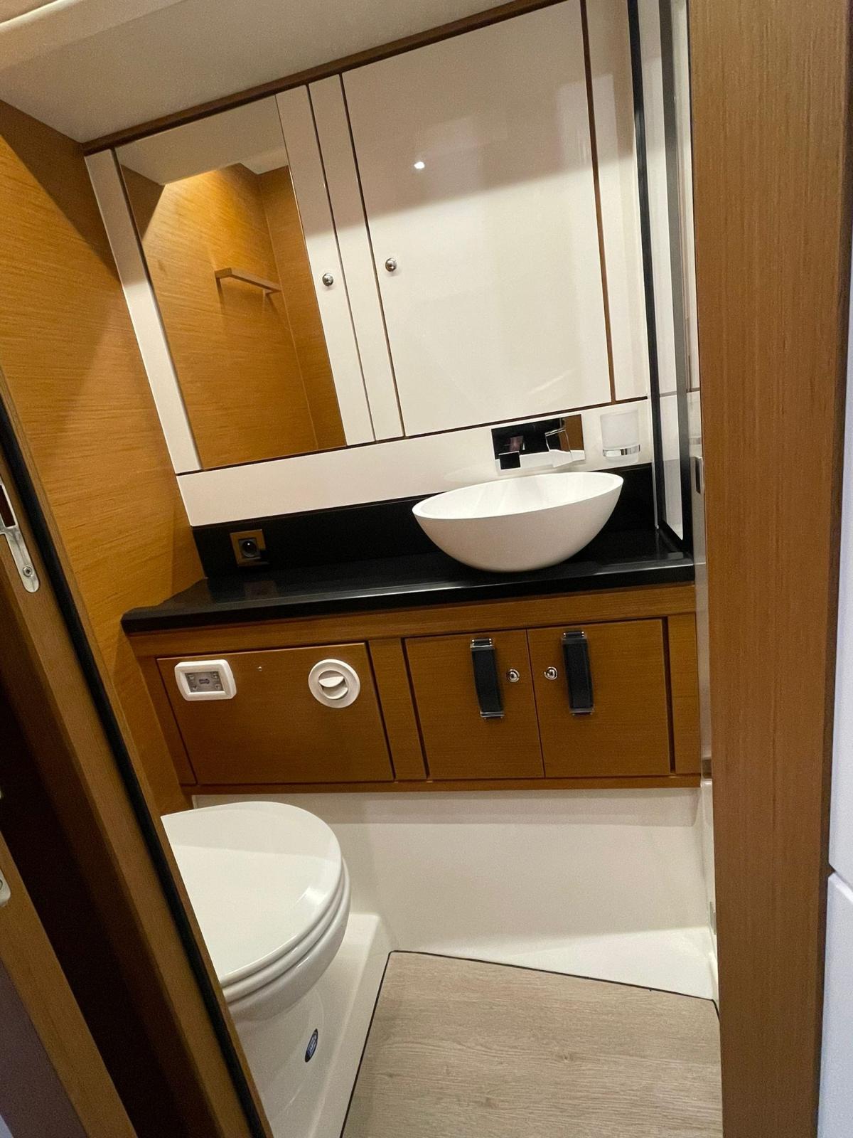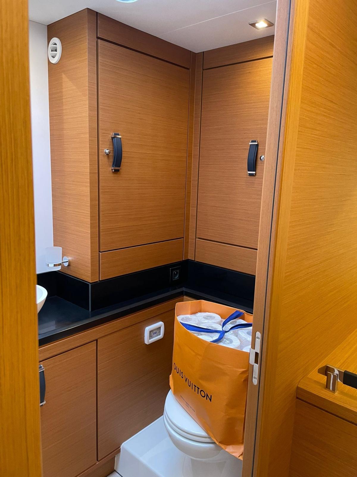Air Conditioning (60.000 BTU), BBQ/Grill, Warm Water System (80l), Inverter Air Conditioning, Watermaker (95l), Waste Water Plant, Interior wooden floor, 12V Outlets, 220V Outlets, Black Water Tank, Video camera (in sala macchine), 3 Electric Toilet, Manual Toilet.