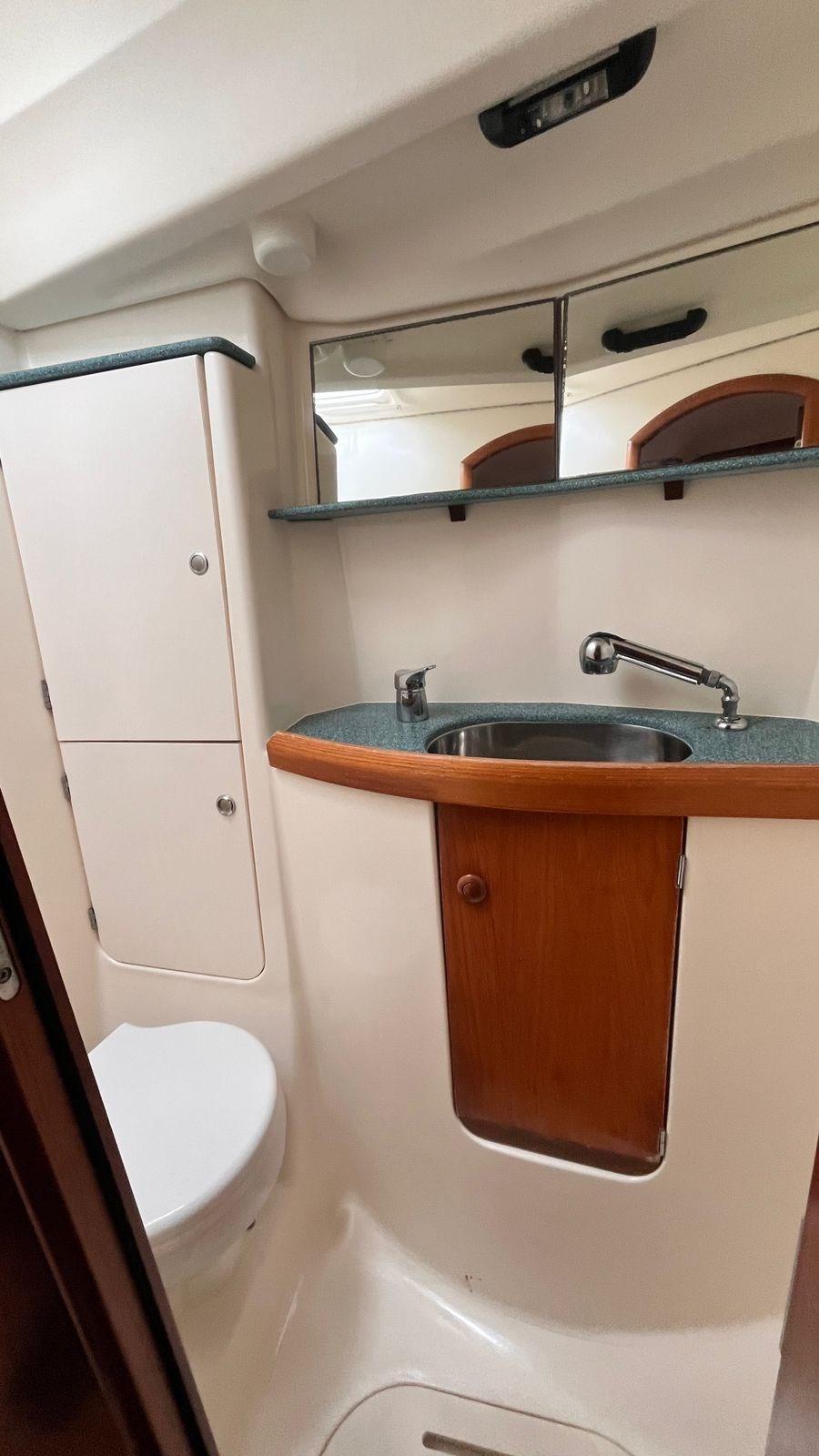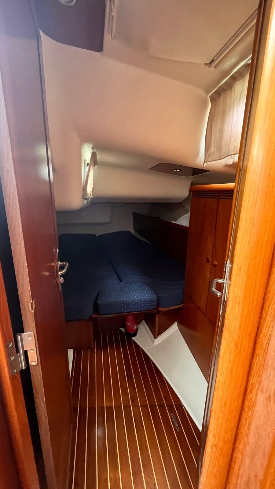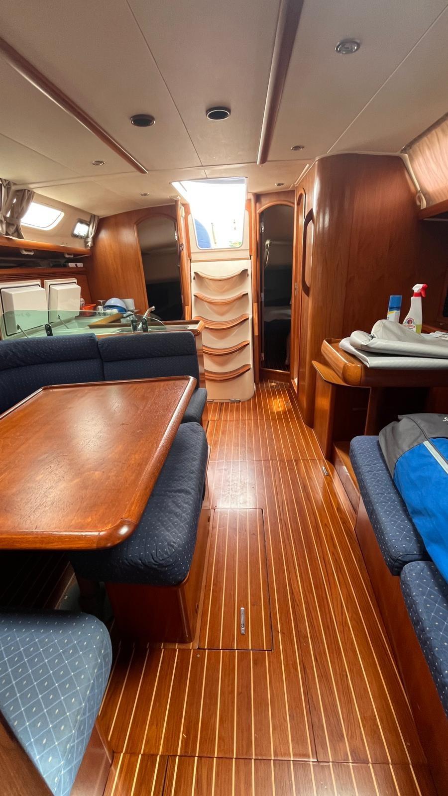 Engine Alarm, Anchor (con 50mt catena), Water pressure pump, 4 Batteries, Deck Shower, Twin Steering, Courtesy Lights, Gangway, Platform, Manual Bilge Pump, Teak Cockpit, Shorepower connector, Water harbor connector system, Electric Windlass, Strand rigging (sostituite sartie esterne 2013), swimming ladder, Outboard Engine Support Bracket, cockpit table (pieghevole), 4 Winch (Harken).