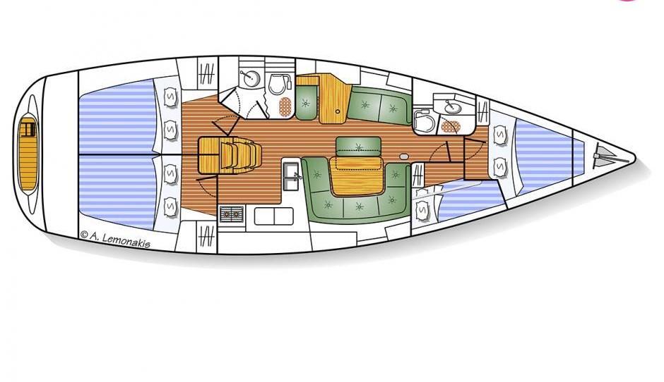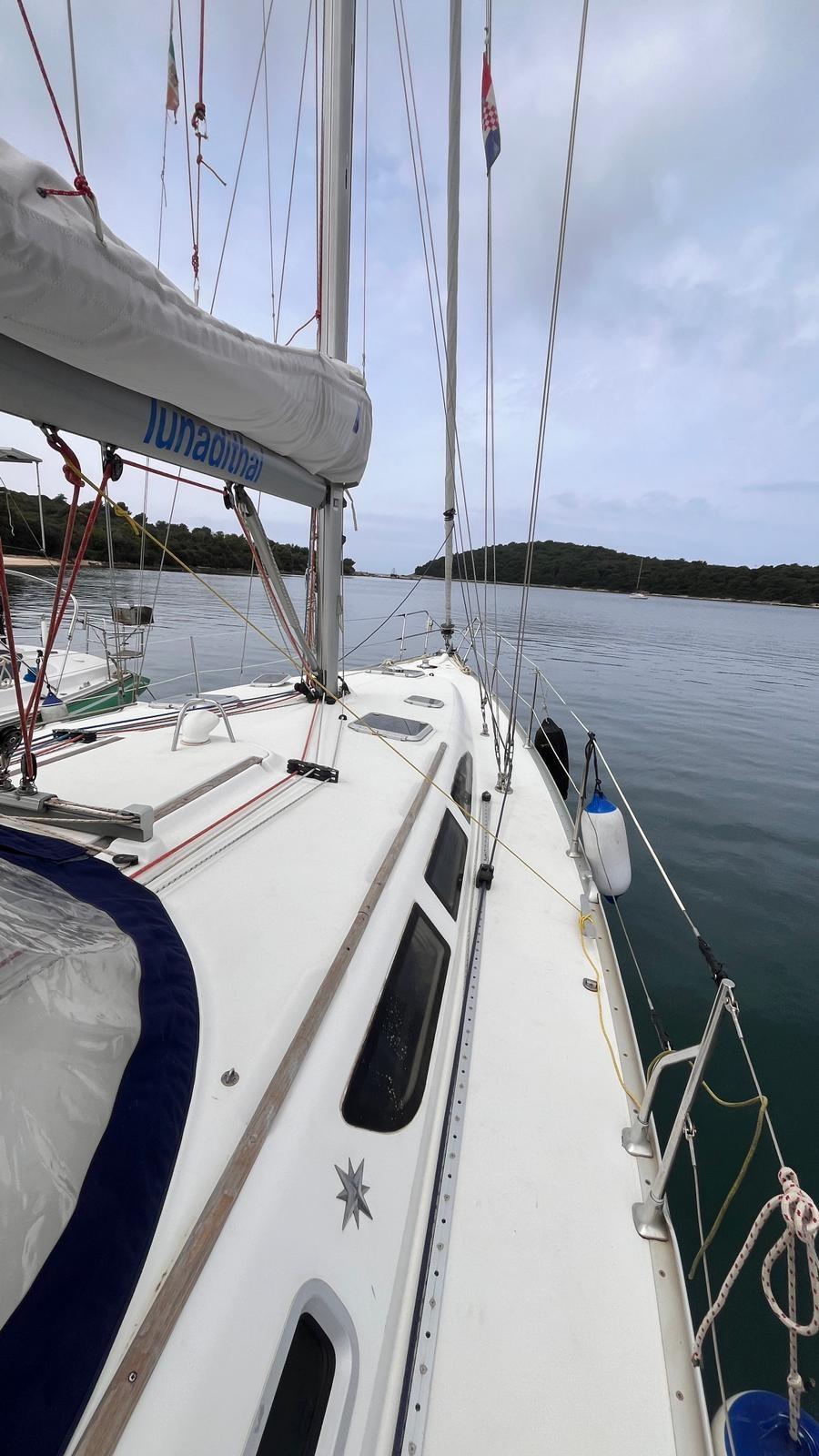 Beautiful, stylish, spacious and comfortable. Jeannau Sun Odyssey 43 is one of the most popular French sailboats of the last twenty years, ideal for carefree sailing. Architect Daniel Andrieu and the Jeanneau design studio have designed a versatile, ergonomic boat, designed to be sailed by demanding sailors