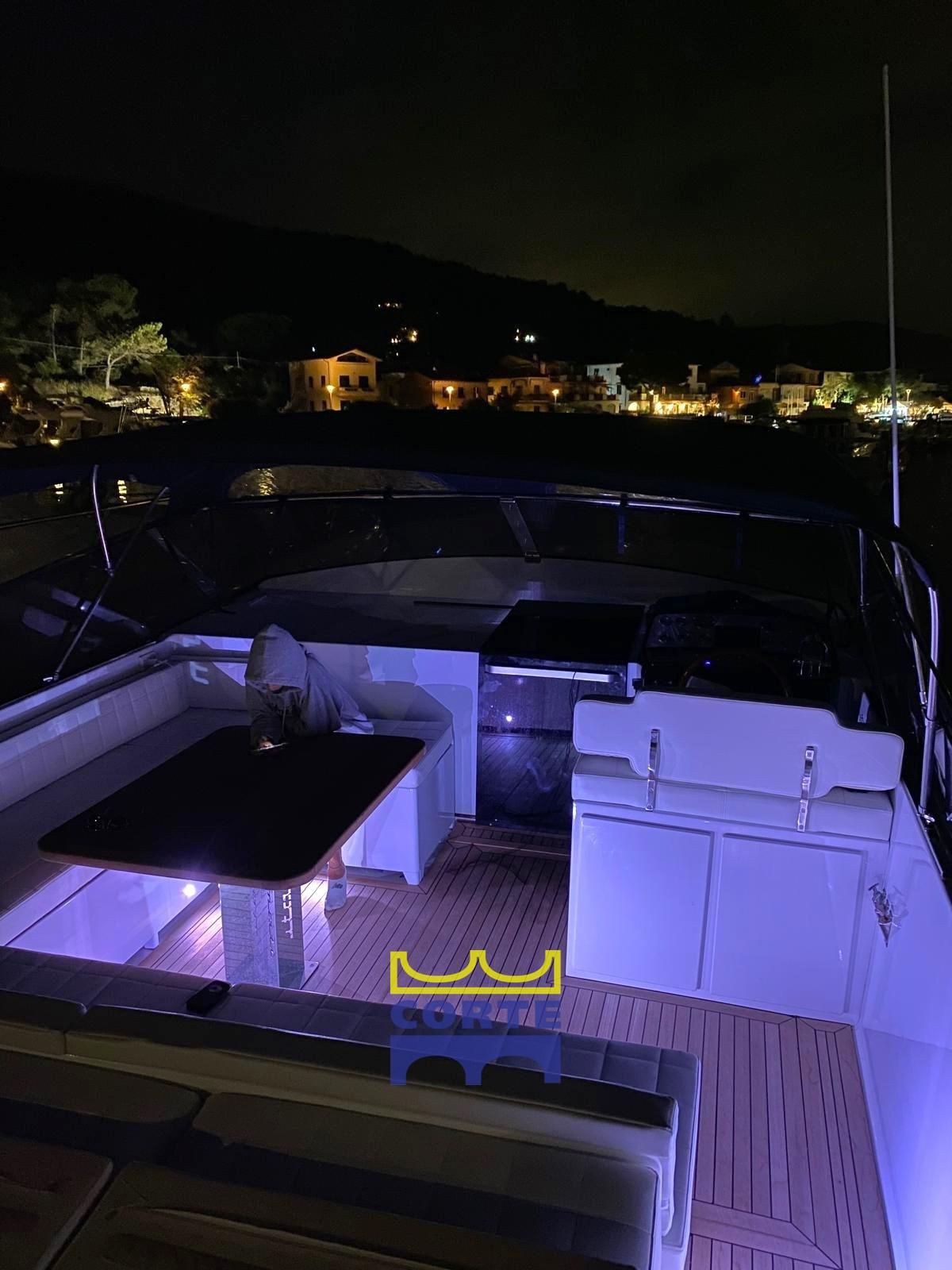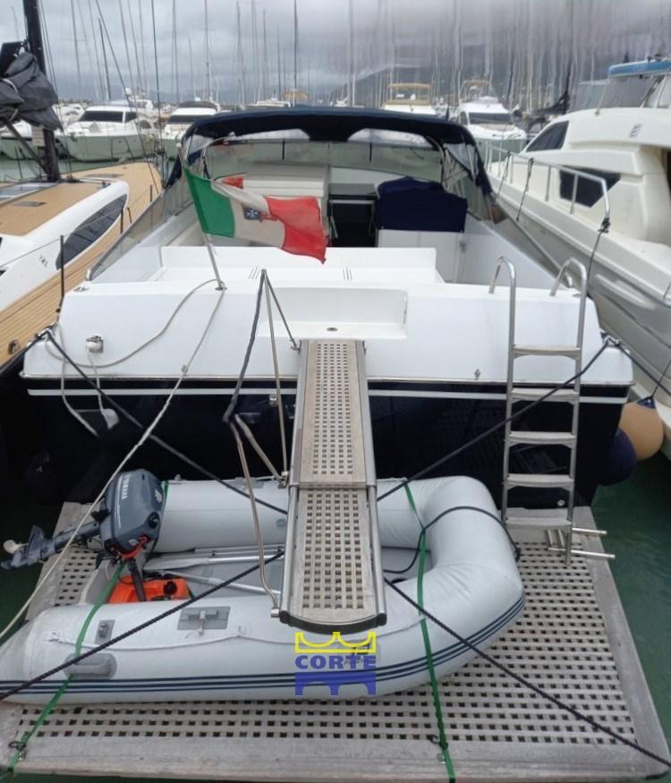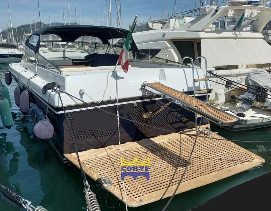 Engine Alarm, Bilge Alarm, Water pressure pump, Batteries (2024), Shore power cable, Deck Shower, Tender Crane (passerella), Gangway, Platform (poppa carabottino in teak), Automatic Bilge Pump, Entry door, Teak Cockpit, Shorepower connector, Electric Windlass, swimming ladder, cockpit table.