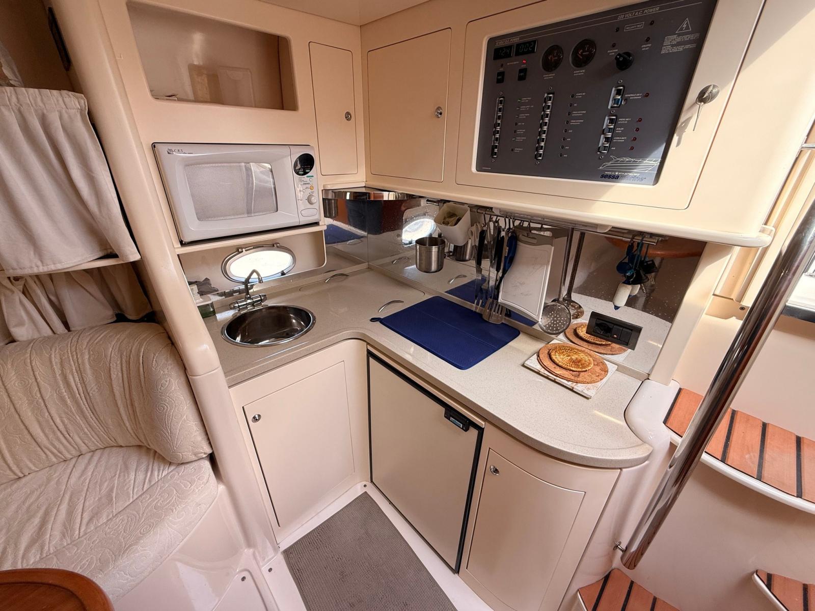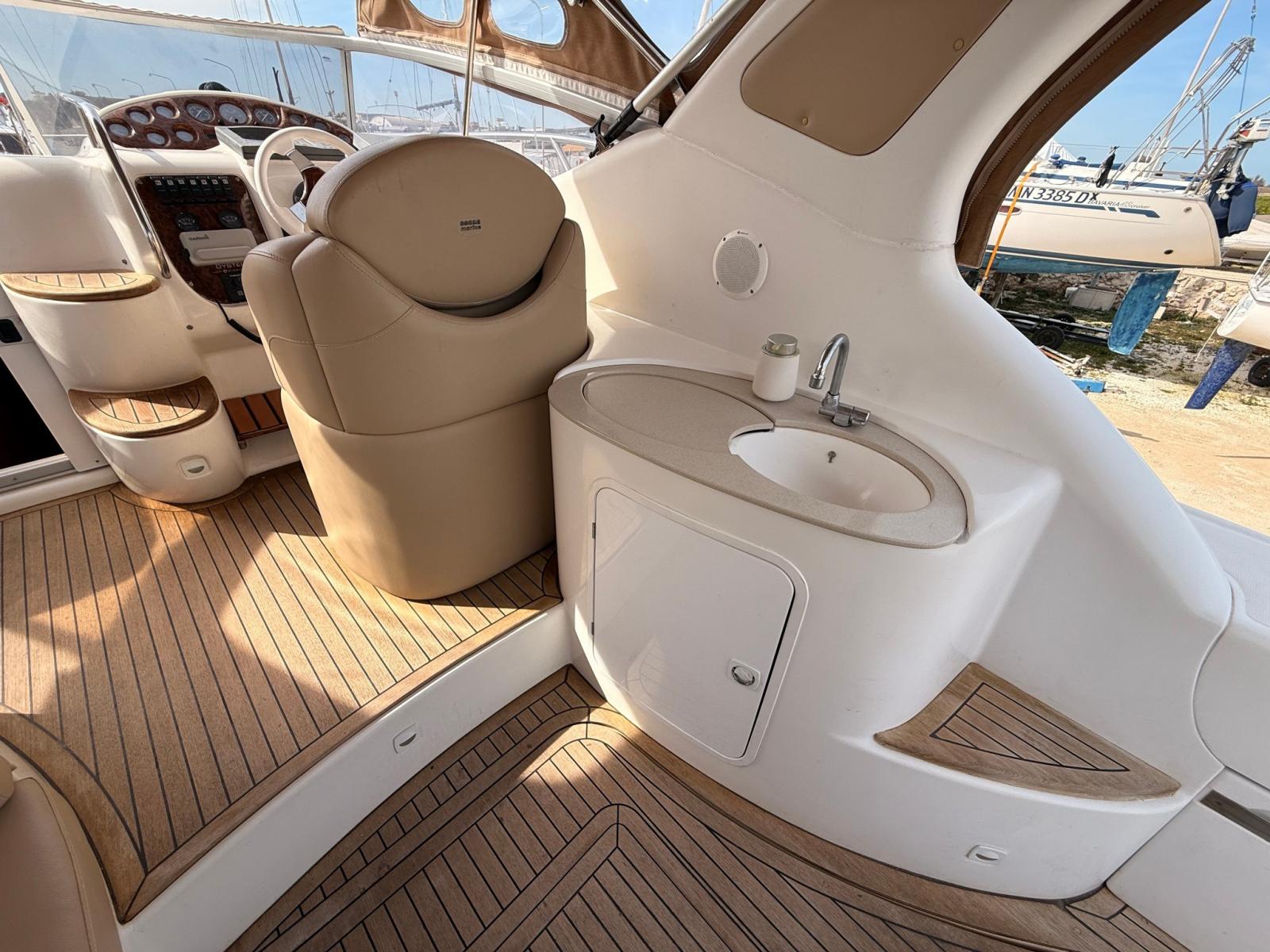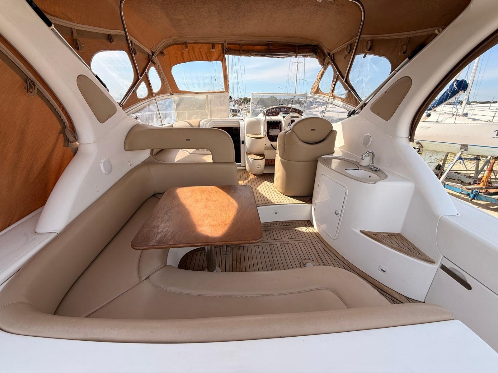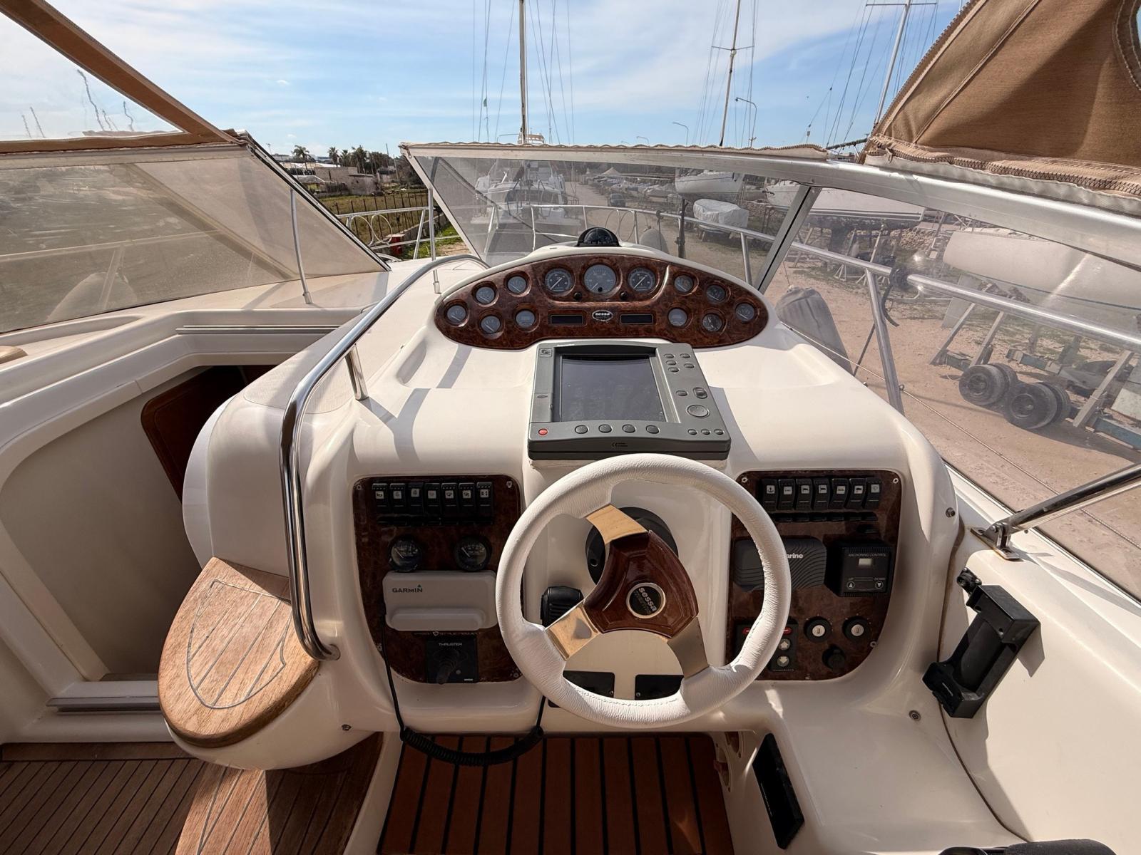 EQUIPPED WITH COMPLETE RAYMARINE ELECTRONICS, BOW THRUSTER, 3.5 KW GENERATOR, AWNINGS AND COMPLETE CUSHIONS.
