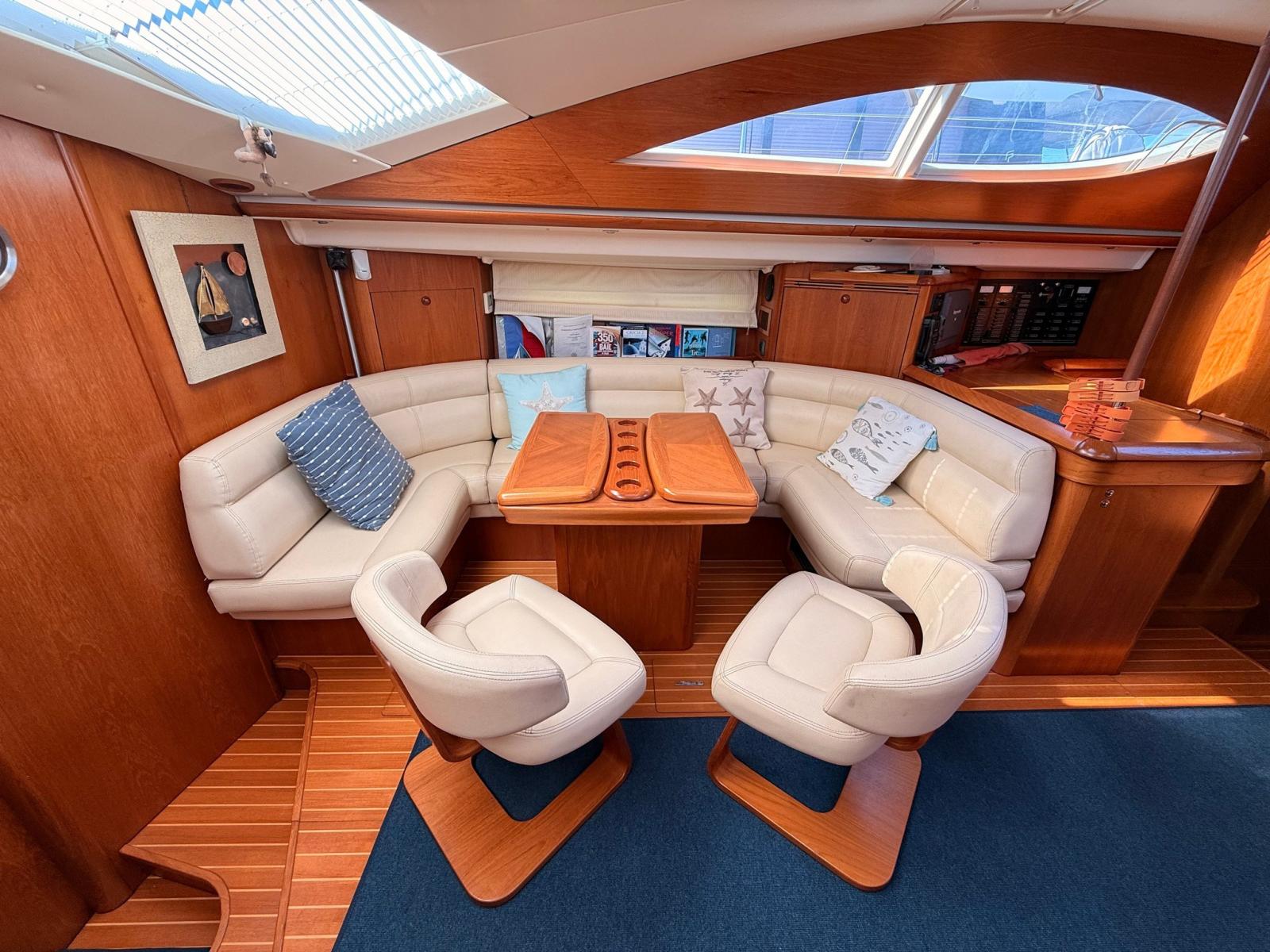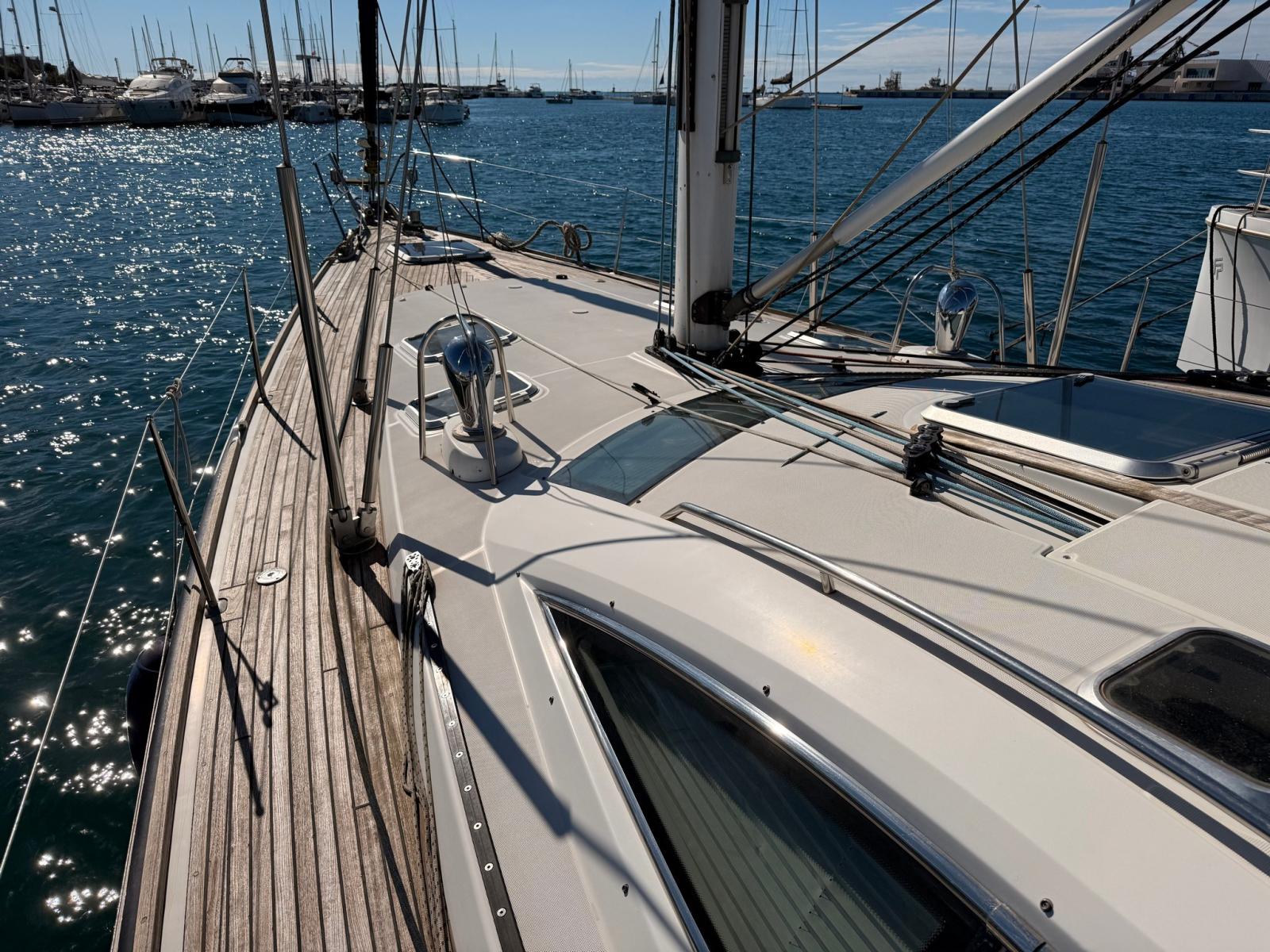 Engine Alarm, Water pressure pump, 6 Batteries, Teak Side Decks, Shore power cable, Deck Shower, Twin Steering, Fenders, Gangway (IDRAULICA), Platform, Manual Bilge Pump, Entry door, Teak Cockpit, Shorepower connector, Voltage Rectifier, Electric Windlass, Strand rigging, swimming ladder, cockpit table, 3 Winch.