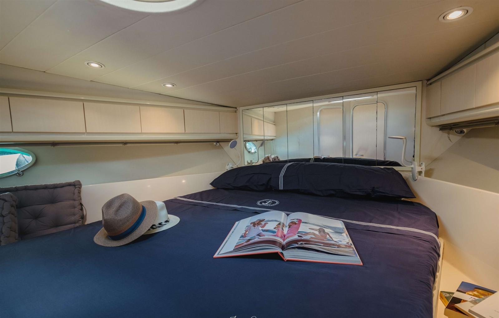 HULL: completely repainted white/grey HULL: totally overhauled, the old antifouling removed, the negative osmosis check was carried out, 3 coats of gelshid (primer) was applied and 2 coats of antifouling was applied. FASCIAMI: The various governors have been checked. BILGES: of all bilges total stern, engine room, central part and bow. OPERA VIVA: polishing to all parts GRP and Aluminium, 2021 replacement of the porthole above the owner's room and half of the interior ceiling. CLEANING: Internal cleaning, cleaning of cushions, sofas, mattresses and oil dyeing for teak and arrangement of teak profiles PROPELLERS AND AXLES: Overhauled and checked for perfect rotation. On-axis transmission. RUDDERS: Overhauled FLAP: Overhauled pistons BOW THRUSTER: CT125 Max Power thrust 115kg thrust installed, for boats from 13 to 26 meters, this to have more power in case of very strong winds. ELECTRICAL PARTS: A global check of all electrical parts has been carried out, from navigation lights, to instruments connected to the engine such as water temperature, fuel, oil, tachometer. 2 new hour counters installed, the LED light system changed.