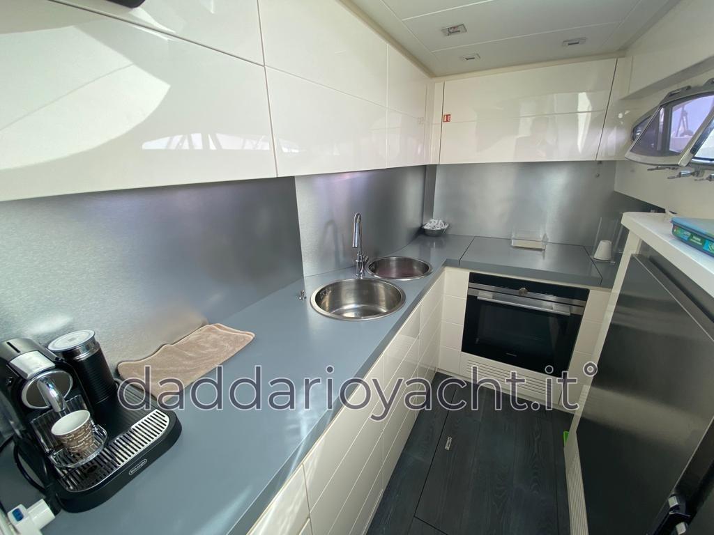 Galley (induzione 4 fuochi), Oven (elettrico), 4 Refrigerator (CUCINA, SALONE, CABINA ARMATORE, CABINA EQUIPAGGIO), ICE Maker, Dishwasher, Washer, Coffee Machine, Microwave Oven (CABINA EQUIPAGGIO).