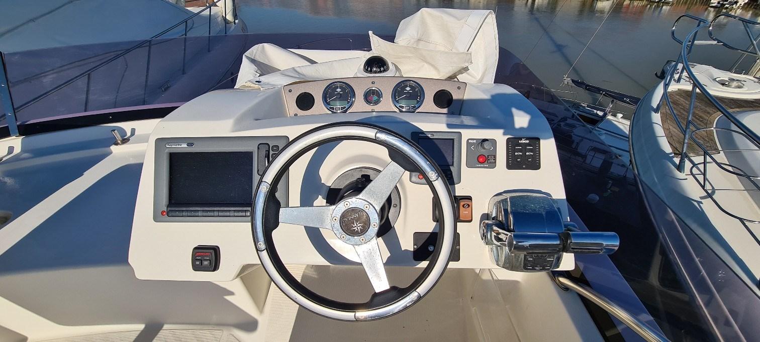 Engine Alarm, Bilge Alarm, Water pressure pump, Deck Shower, Twin Steering, Hydraulic Flaps, Gangway, Entry door, Teak Cockpit, Shorepower connector, Water harbor connector system, Electric Windlass, swimming ladder, Horn.