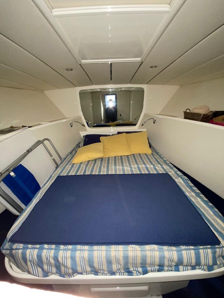 Lofrans 800W electric windlass - 20 kg Bruce anchor - hydraulic gangway - stern platform with swim ladder - outdoor shower - kitchenette with two plates, sink and internal refrigerator - external fridge - boiler - stereo system - sun cushions.