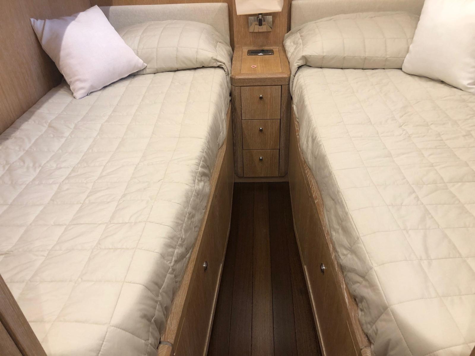 Master cabin with double bed and bathroom - guest cabin with double bed and bathroom - guest cabin with two beds on the floor, third foldaway bed and bathroom.