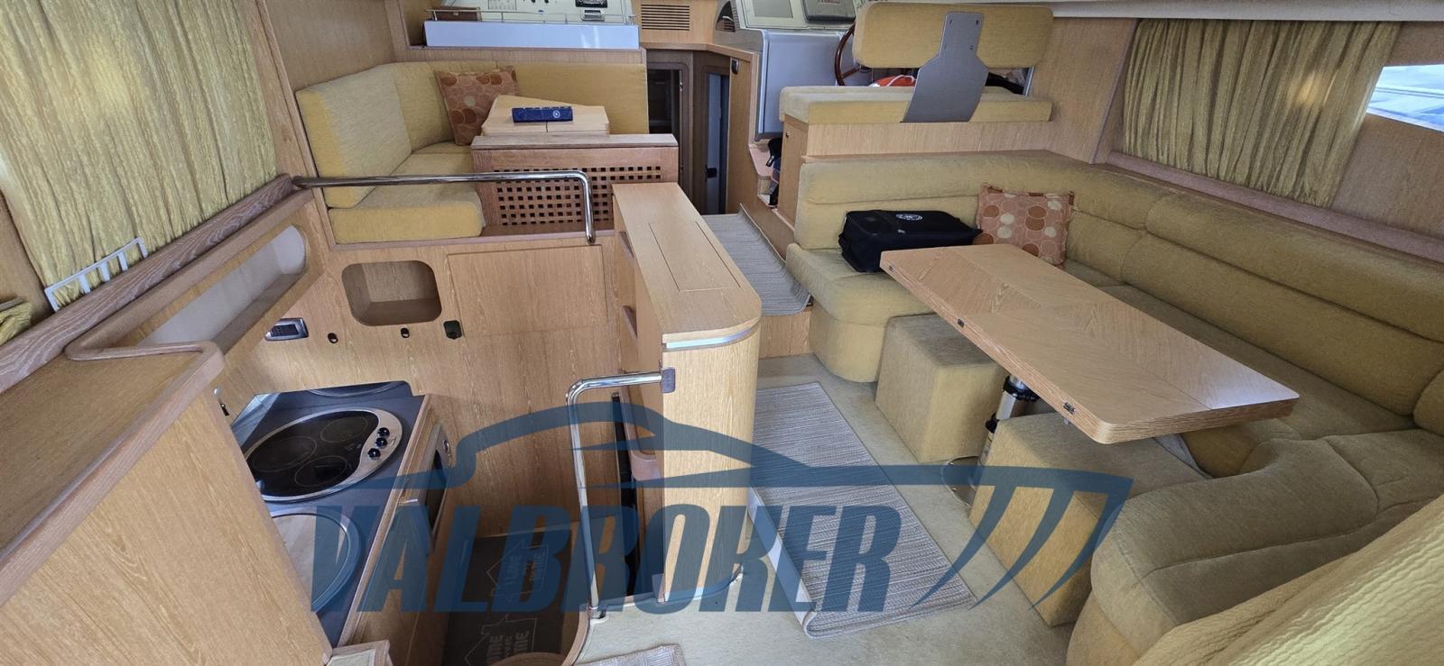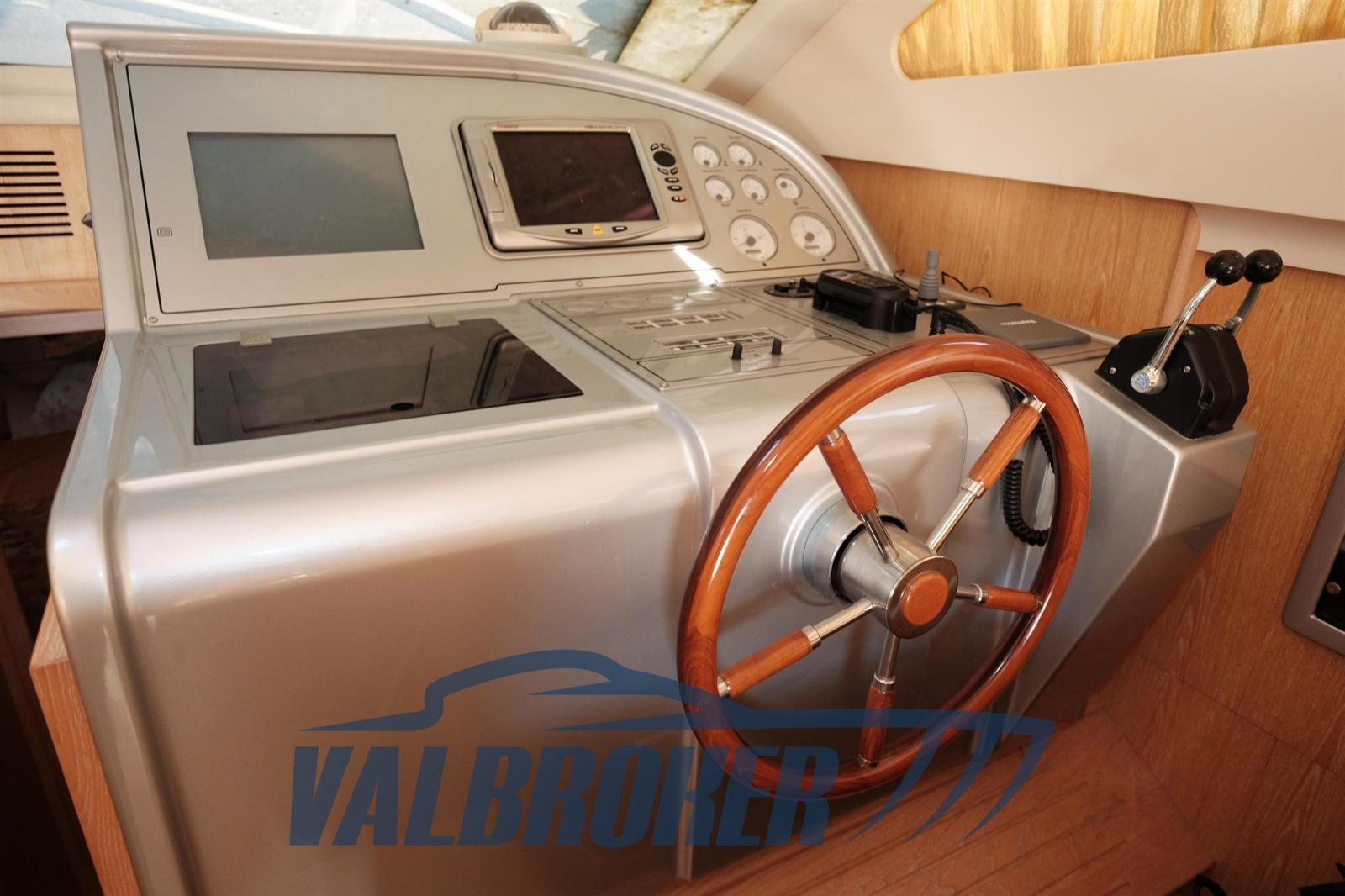 Double flap piston, summer and winter blackout net, teak steps, double entrance from the platform to the cockpit.2019: windshield cover, engine room insulation restoration, right engine exchanger. 2021: new macerator toilet. 2022: new gel service batteries, special engine batteries for AGM start-up 2025: chain painting, replacement of engine compartment sound-absorbing panels, propeller axis grinding, zinc painting, touchscreen on-board computer calibration adjustment, new service batteries.