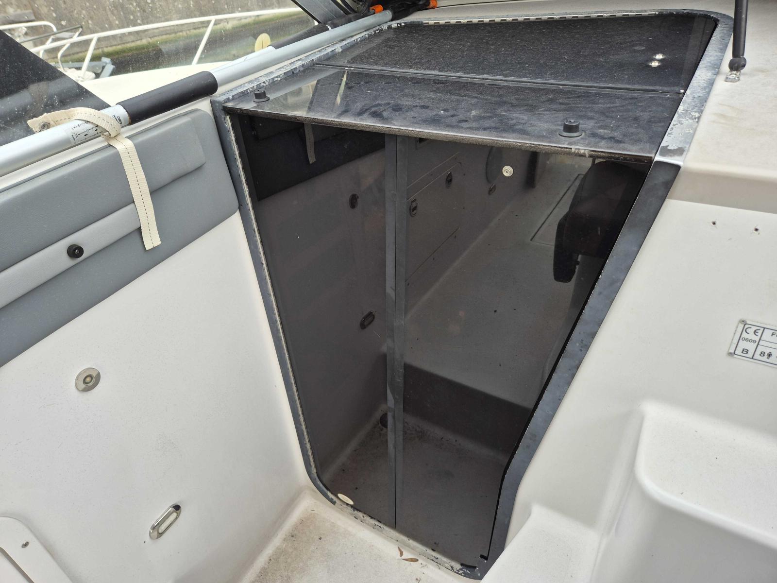 A comfortable and reliable cabin cruiser, ideal for family outings or trips with friends. This model offers a length of approximately 23 feet (about 7 meters) and a beam of 8 feet (about 2.44 meters), making it a stable and easy-to-handle boat. It is powered by a 220 hp inboard gasoline engine with a stainless-steel DP drive, a setup well-known for its ease of maintenance and strong performance on the water. The fiberglass hull ensures durability, longevity, and comfortable navigation even in more demanding conditions.
