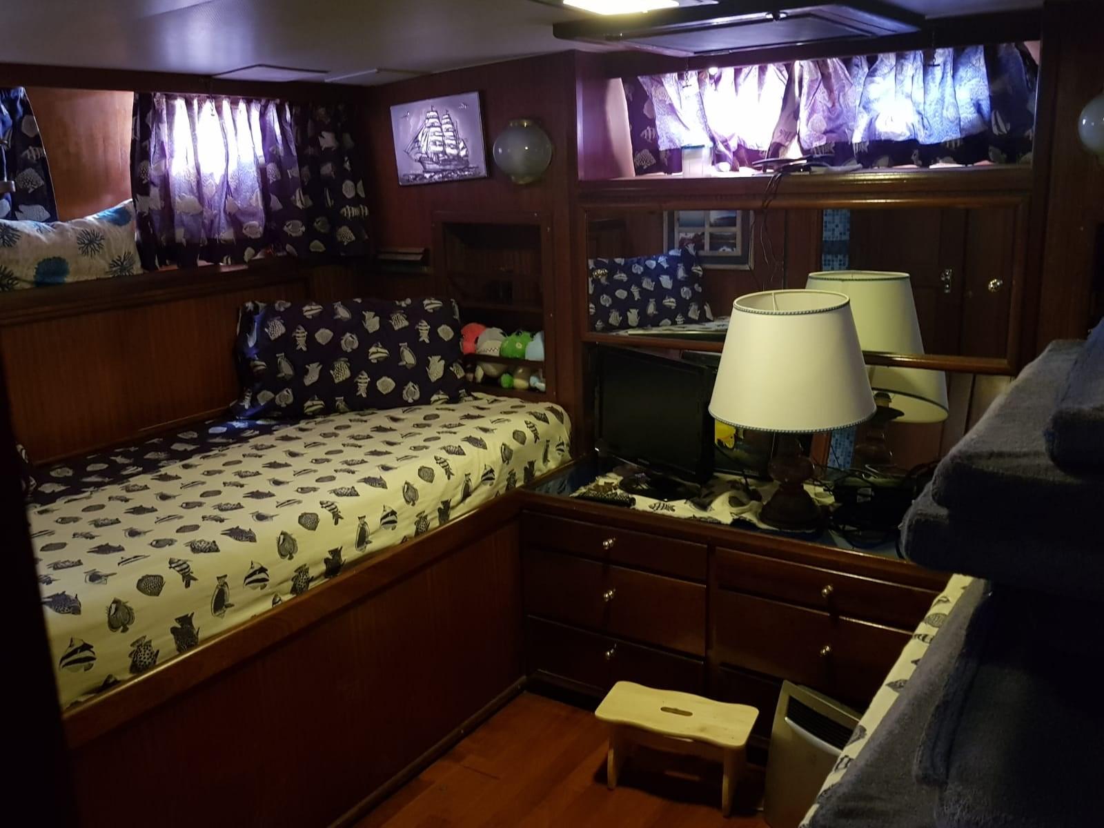 Comfortable boat with a beautiful aft owner's cabin. Perfect for those who want to make a house by the sea some work to foresee. One engine 200 hours, the other undetectable. Geonav 3000 interface with autopilot ON-BOARD VOLTAGE: 110 V with 220V centralized transformer for dock socket Bow Sundeck Cushions November 2025 ; Fly cushions made in 2022