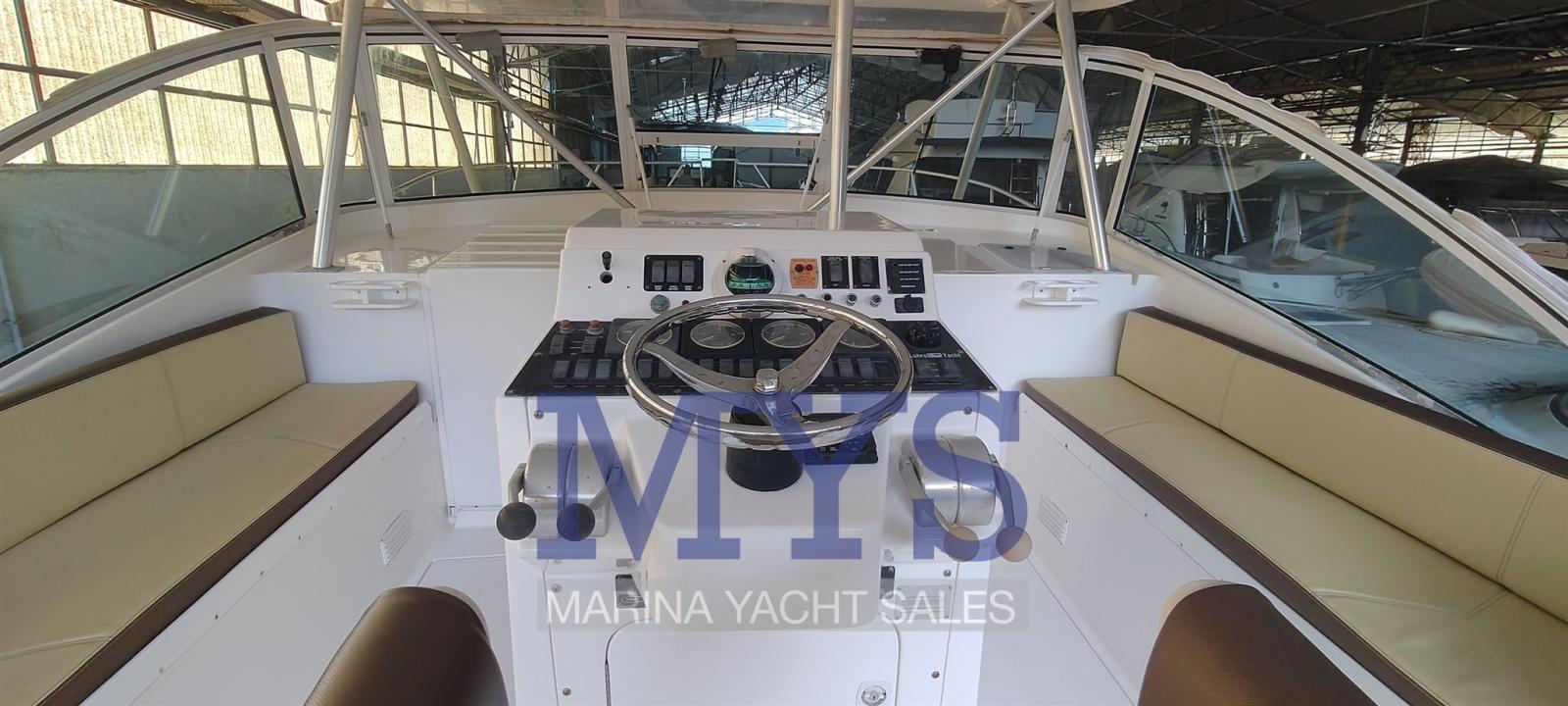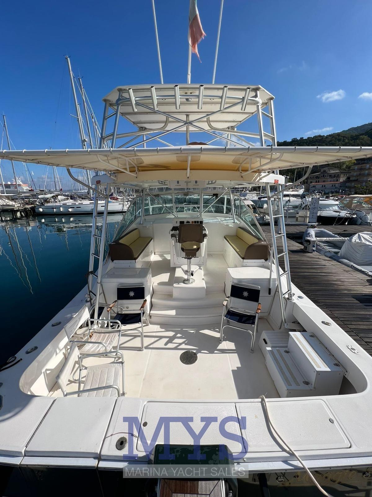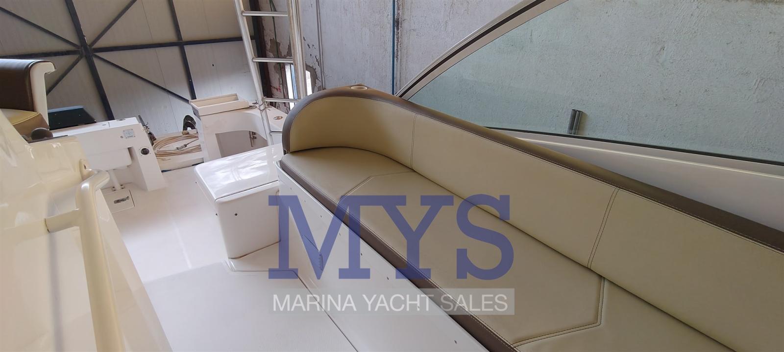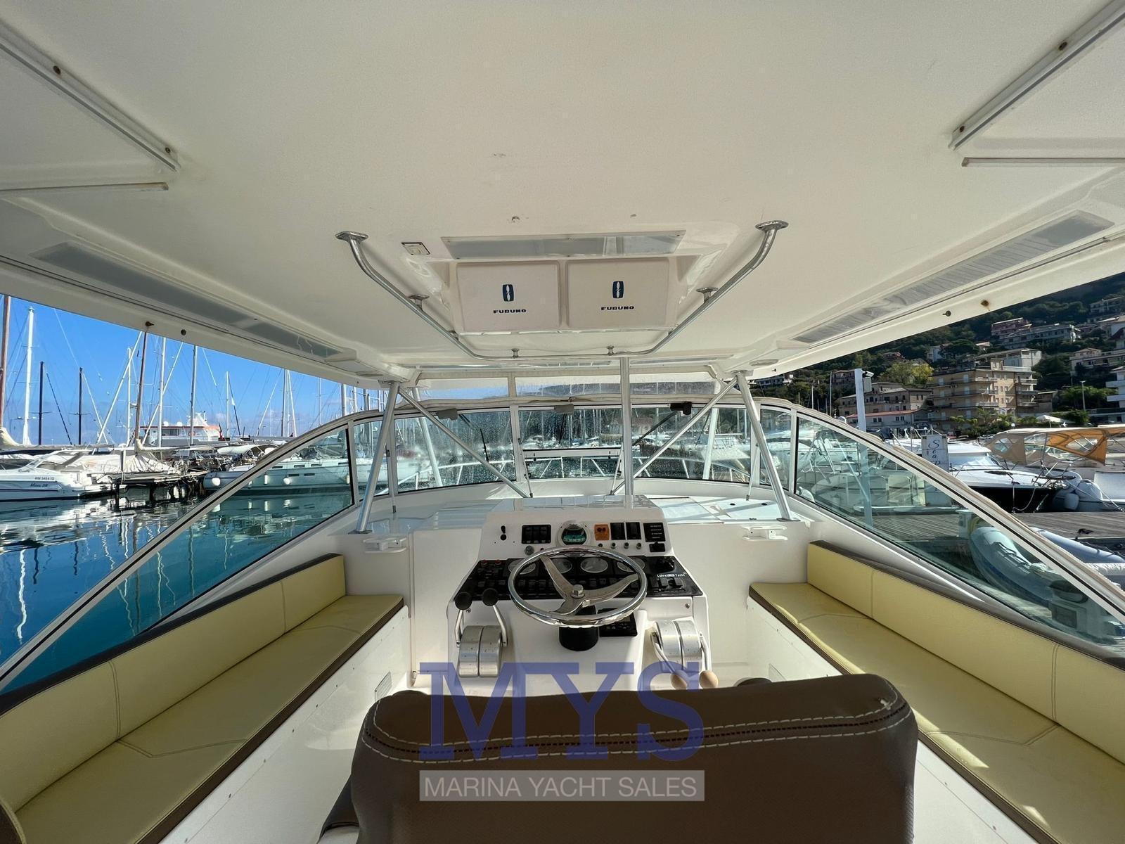 Fume/Gas Detector, Engine Alarm, Bilge Alarm, Alternator, Electric Engine Compartment Opening, Water pressure pump, Shore power cable, Special Colour, Deck Shower, Twin Steering, Headlights fixed on the stem, Hydraulic Flaps, Fire Extinguishing System, Flaps Indicators, Anchor Chain Washdown, Washbasin in the cockpit, Courtesy Lights, Gangway (idraulica besenzoni), Platform, Deck Wash Pump, Entry door, Shorepower connector, Electronic instrumentation repeater, Electric Windlass, swimming ladder, Waste Water Purifier System, Living Room Foldable Table, Horn, T-Top.