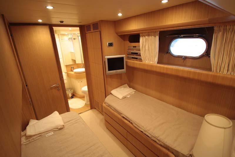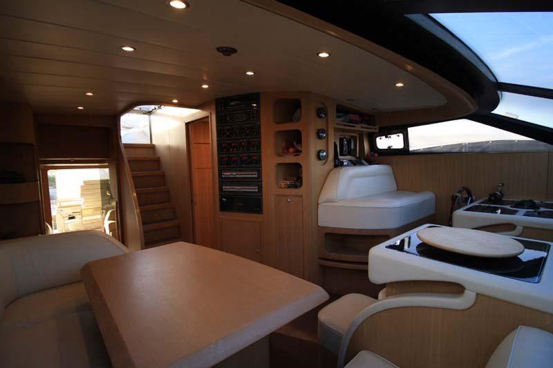Engine Alarm, Bilge Alarm, Directional Spotlight, Hydraulic Flaps, Tender Crane, Fire Extinguishing System, Gangway (Elettroidraulica), Teak deck, Side door, Teak Cockpit, swimming ladder, cockpit table, 2 Stern Winches.