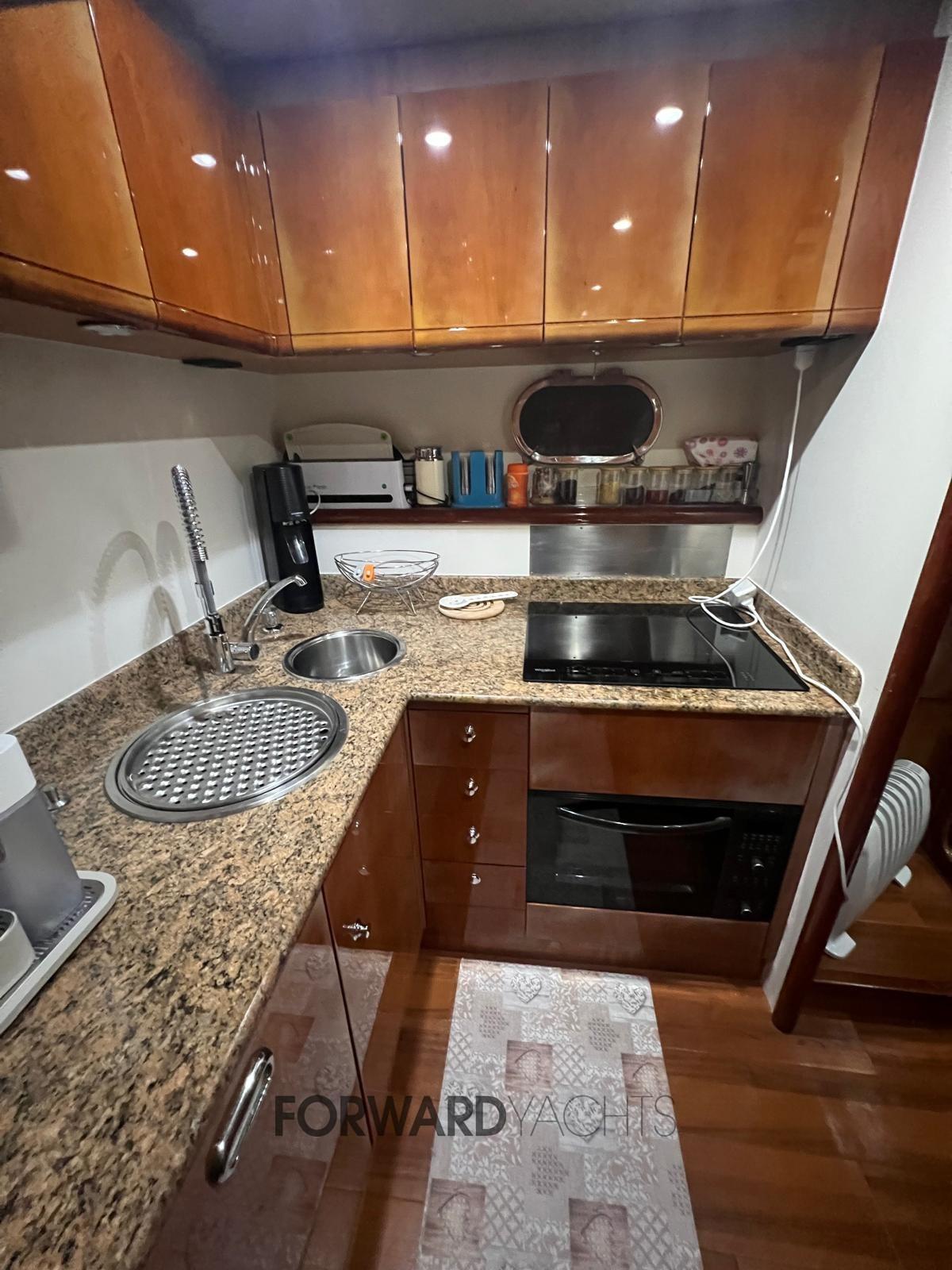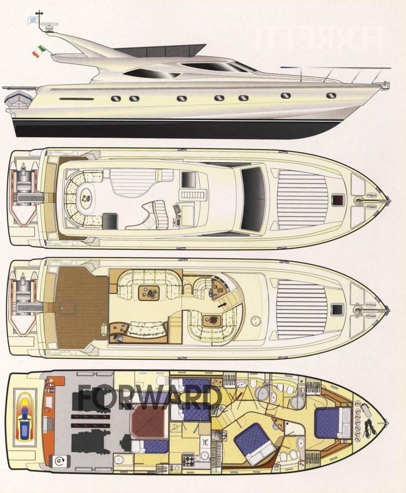 Sleeping area: 3 cabins, 3 bathrooms + crew and equipped with: bow thruster, 3° control station in the cokpit, teak cockpit, water maker, GPS touch screen.
