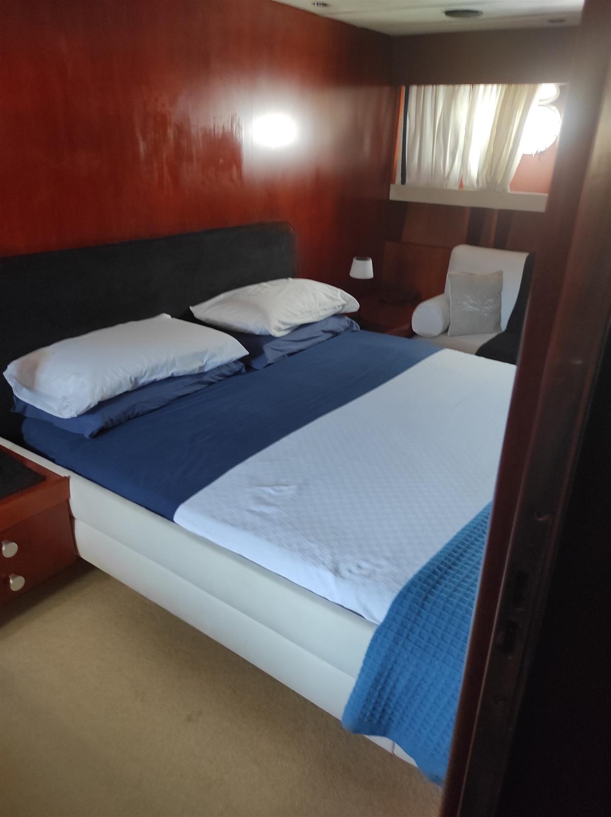 4 cabins and 4 bathrooms + 2 crew. Master cabin with en-suite bathroom and separate shower cubicle, 1 single cabin with en-suite bathroom, 2 cabins with parallel beds and 3 rollaway beds. Currently dry