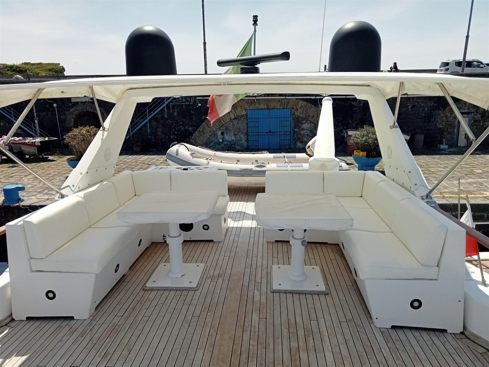 Water pressure pump, Twin Steering, Hydraulic Flaps, Davits for tender on fly, Fire Extinguishing System, Gangway (A scomparsa in teak), Platform (Maggiorata teak), Teak Cockpit, 2 Electric Windlass, cockpit table, 2 Stern Winches.