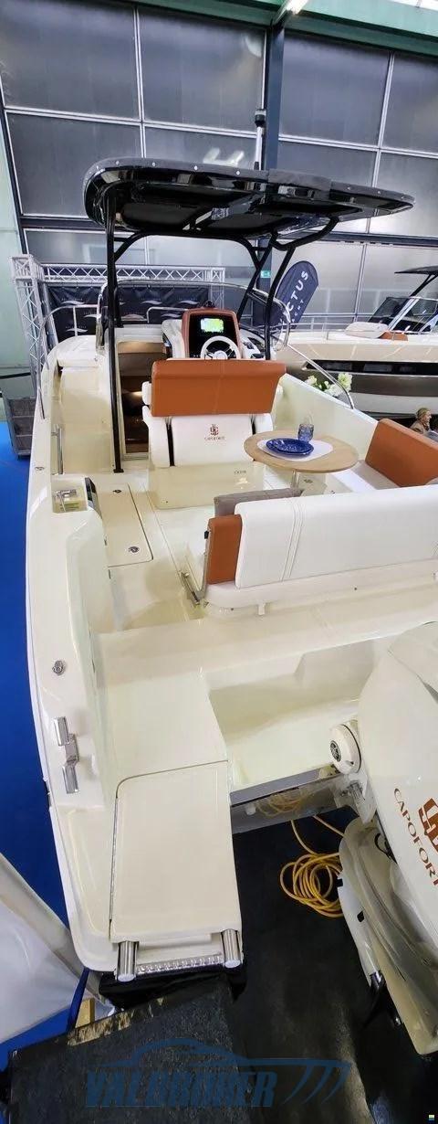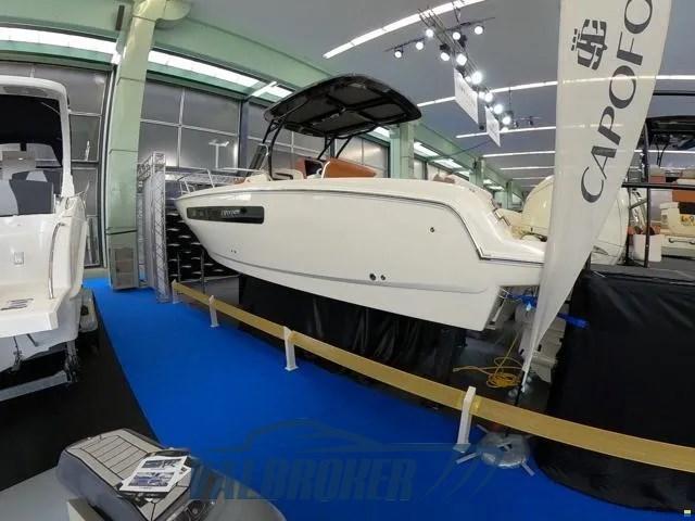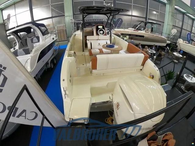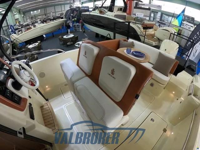 Model year 2023. New boat, DEMO! Yamaha 300 hp outboard engine, luxury chassis cab. The color of the boat is Personal White with cream-colored cushions and cognac-colored details. Engine warranty still to be activated. Used for catalog photos only.