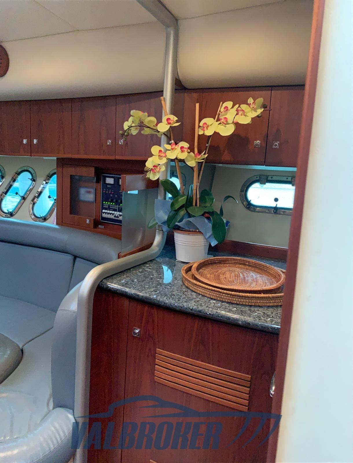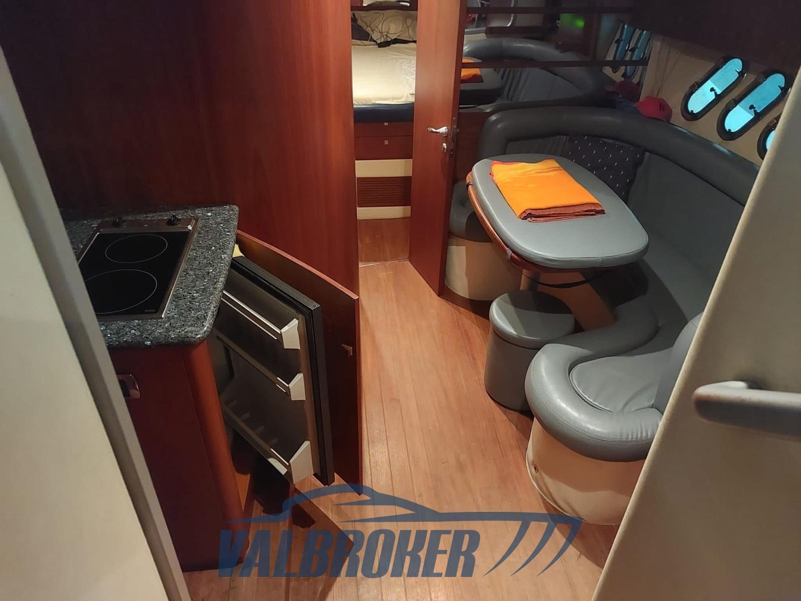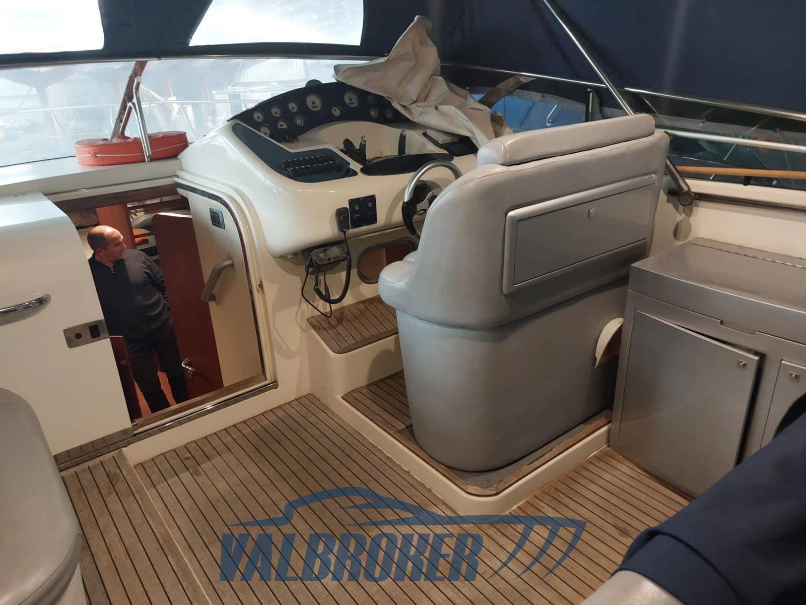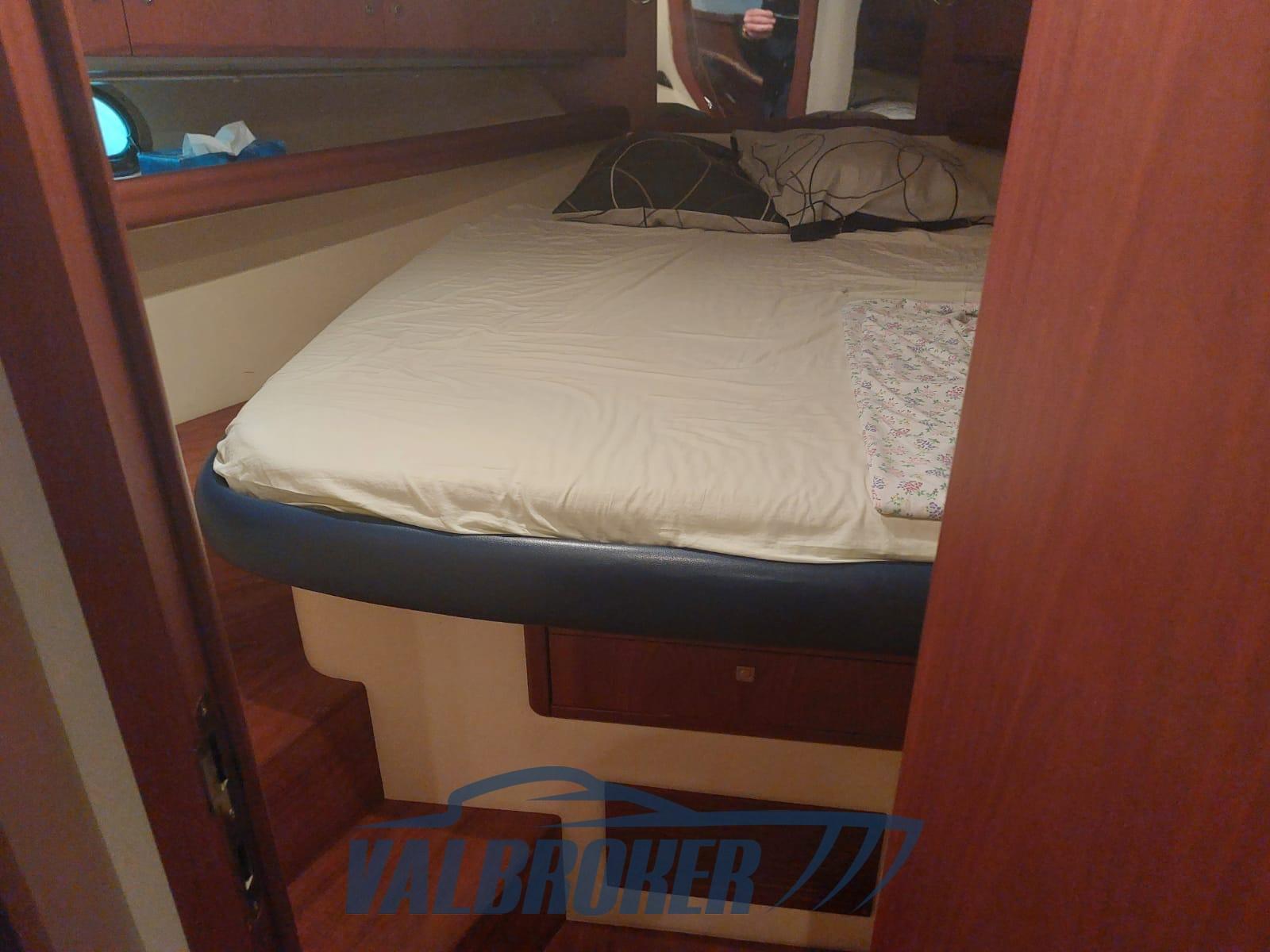 Boat with sporty lines and excellent seaworthiness. Recently overhauled 2x370 HP Volvo Penta D6 engines. Convertible dinette in the bow, double master cabin, triple guest cabin and two bathrooms.
