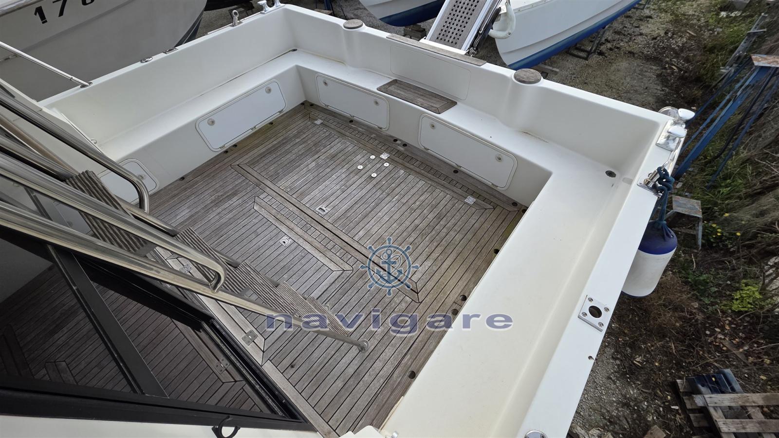 Engine Alarm, Water pressure pump (2025), Battery charger (QUICK 2017), Shore power cable, Deck Shower, Twin Steering, Bow Thruster (2017 NUOVA), Hydraulic Flaps, Crane, Flaps Indicators, Courtesy Lights, Gangway (2017), Platform, Automatic Bilge Pump, Manual Bilge Pump, Teak Cockpit, Shorepower connector, Water harbor connector system, Voltage Rectifier, Electric Windlass, swimming ladder.