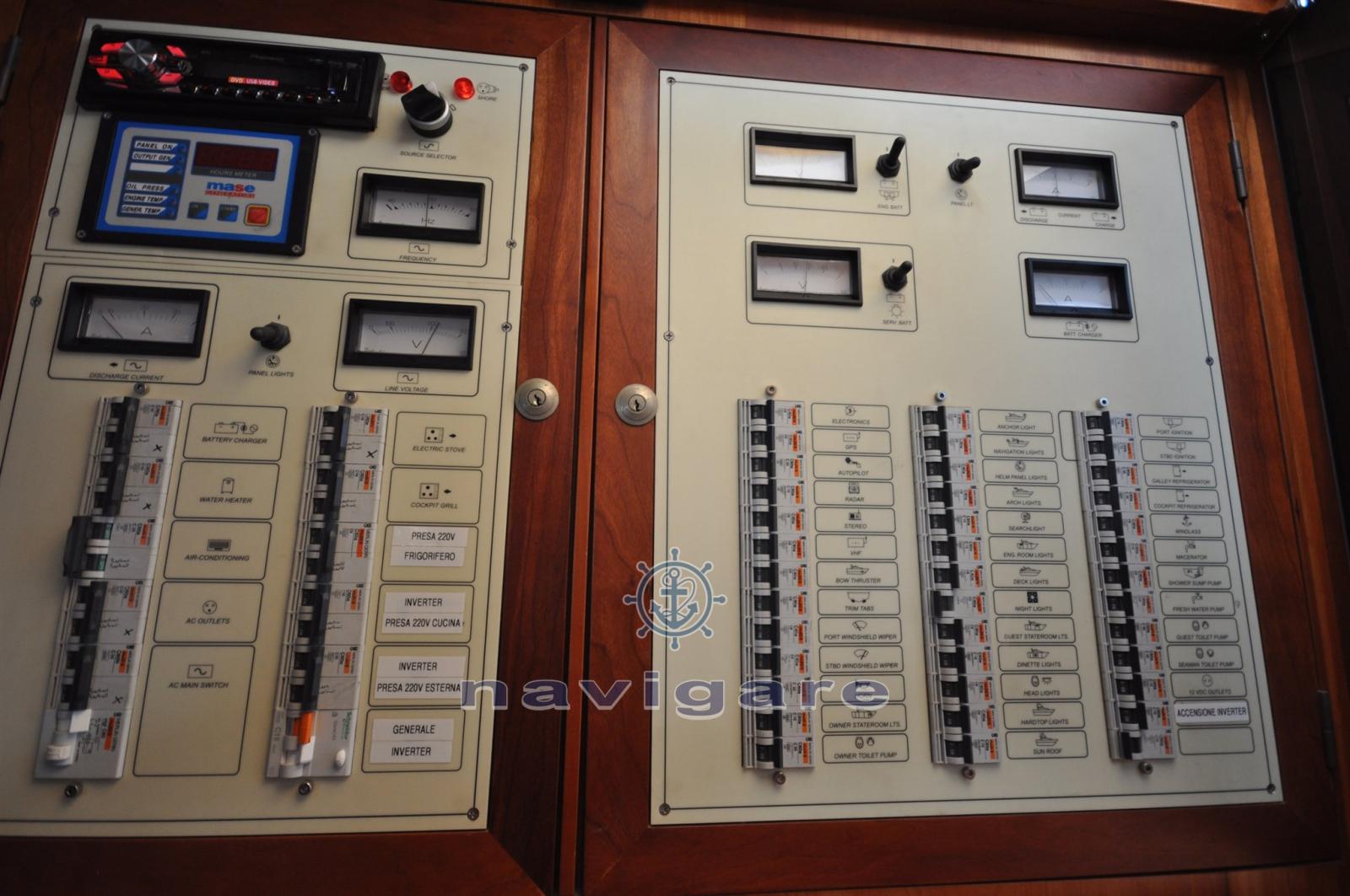 Engine Alarm, Bilge Alarm, Water pressure pump, 4 Batteries (2 DA 180 PER I SERVIZI E N. 2 DA 200/AMP/H PER L'AVVIAMENTO MOTORI ANNO 2016), Teak Side Decks, Deck Shower, Electric Flaps, Gangway, Automatic Bilge Pump, Entry door, Teak Cockpit, Shorepower connector, Water harbor connector system, Voltage Rectifier, Electric Windlass, swimming ladder.