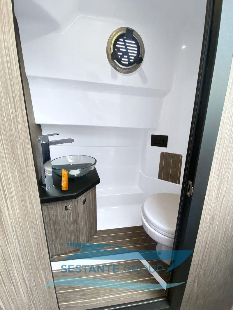 Engine Alarm, Deck Suction of Dirty Water, Water pressure pump, 3 Batteries, Shore power cable, Guard rail, Deck Shower, Washbasin in the cockpit, Courtesy Lights, Waste Water Tank Drain Pump, Automatic Bilge Pump, Teak deck (Seadeck), Teak Cockpit (Seadeck), Shorepower connector, Rollbar, Electric Windlass, swimming ladder, Table, cockpit table, Horn.