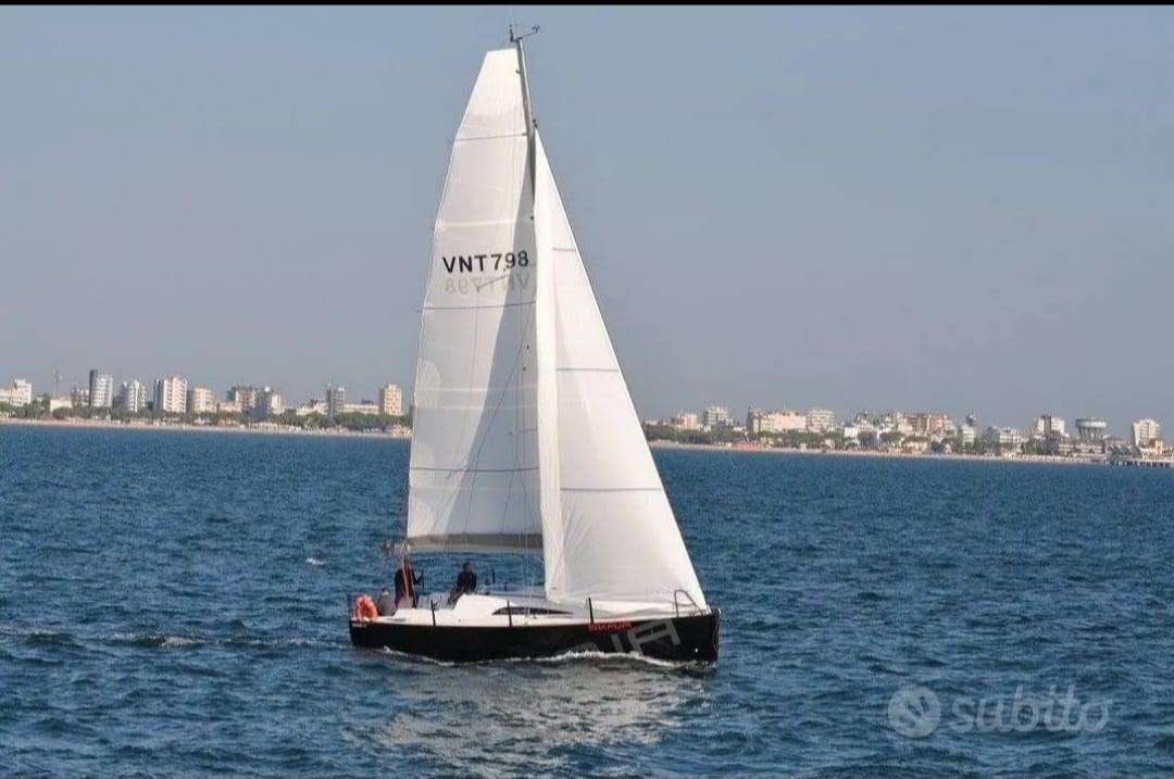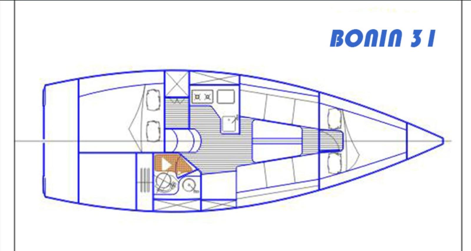 Bonin 31 from 2016, Cossutti yacht design, sports boat devoted to performance: vertical bow, open stern, tapered deckhouse. Hull and deck built in sandwich with vacuum infusion work in solid. Sail plan: 58sqm, 3 tons of weight, very fast in light wind but also calm in strong wind because it is equipped with a T-bulb with a draught of 2m for almost a ton. Dynema 2025 backstay aluminum shrouds, under deck furling jib. Lombardini 20 HP 2016, 500 hours always serviced, three 2025 batteries, 2016 cruising sails equipped with dacron mainsail full batten square top, dacron jib, training spinnaker and gennaker with sock, lazy bag. Black regatta sails 2016 medium heavy jib 2024 light jib, semi-battened mainsail and spinnaker all round 2025 medium light jib. Spinnaker pole and stanchions in carbon bowsprit in original bonin shipyards. Straights and spinnaker circuit 2024. Deck equipment Antall. Quick windlass. Fully removable teac internal table. st2000+ autopilot, Raymarine Element 7 plotter with Mediterranean cartography, wind station and Garmin mast repeater instruments, all in nmea2000 network. Fixed VHF Icon. Amenities within 50 mile 6p raft including 2026 overhaul. Two electric bilge pumps and one manual, autoclave and boiler preparation, refrigerator and two-burner galley, LED lighting and USB sockets at the chart and in the bow and stern double cabins. Diesel 70 liters two 100 liters water tanks. Anchor delta 10 kg 25 meters chain 8mm and 35 mt rope for winch. Spare anchor, spare rudder tiller propeller Gori folding blades. Awning on the boom with zippers on the lazy bag and more. Possible delivery in the Mediterranean to be agreed.