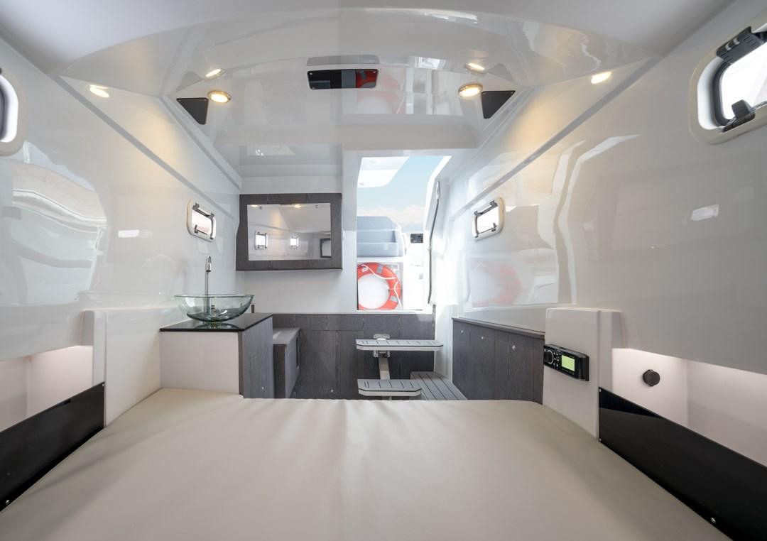 FIBERGLASS ROLLER WITH STEP, SIDE PORTHOLES, TILTING BACKREST AFT SUNDECK, LED NAVIGATION LIGHTS, LED LIGHTING IN THE CABIN