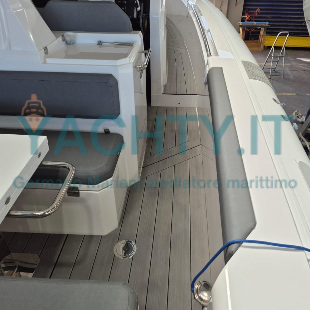 STERN BRIDGE DECK IN GREY SEADEK WITH BLACK JOINTS, ELECTRIC INFLATOR, GALVANIC ISOLATOR