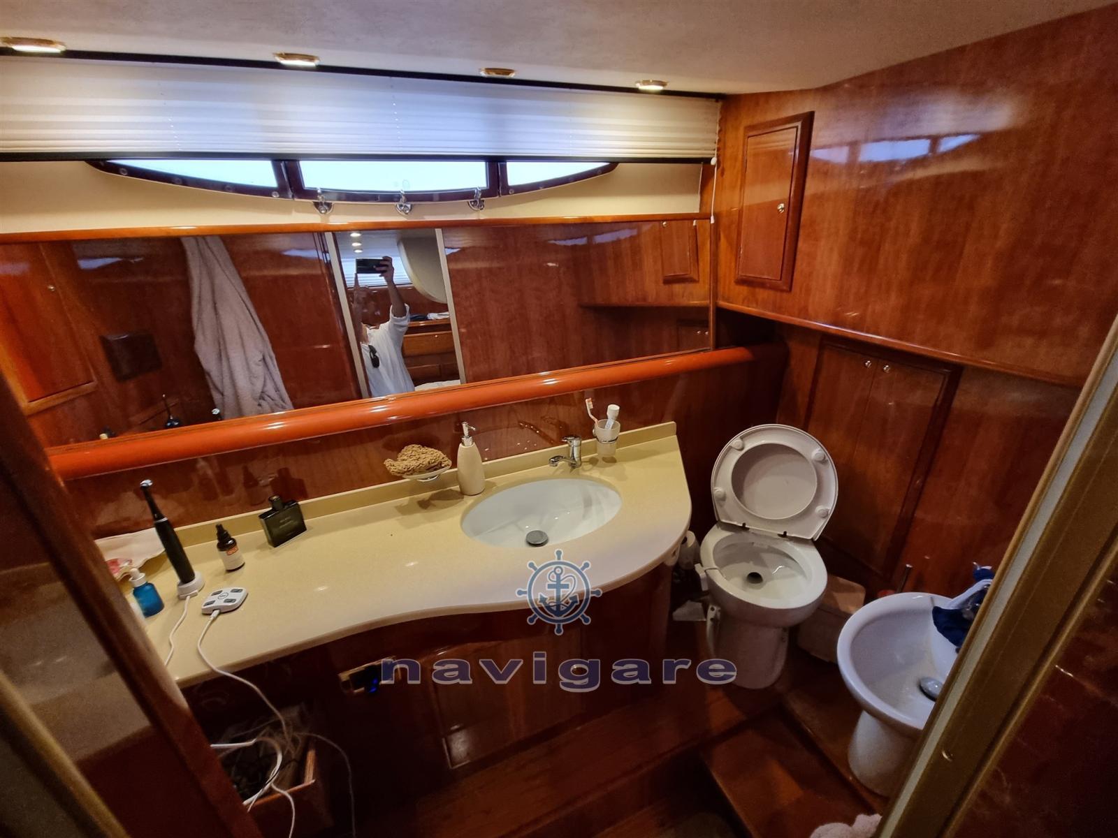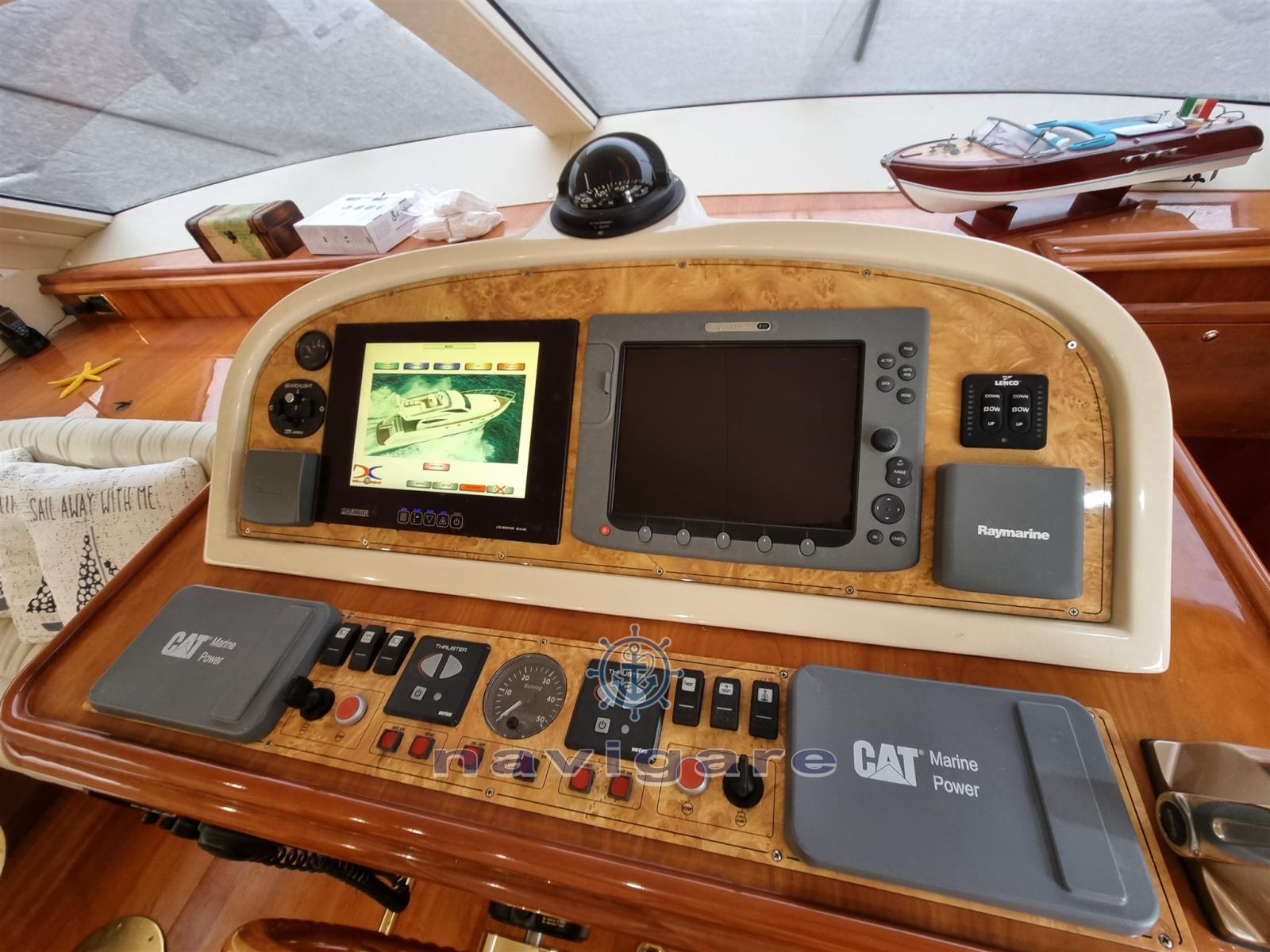 Teak side walkways, Battery charger, Stern thruster, Bow thruster, Adjustable headlight, Hydraulic flaps, Courtesy lights, Gangway, Teak cockpit, Electric windlass, Cockpit table, Bow mooring winch