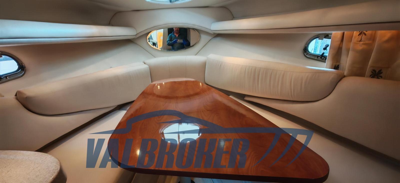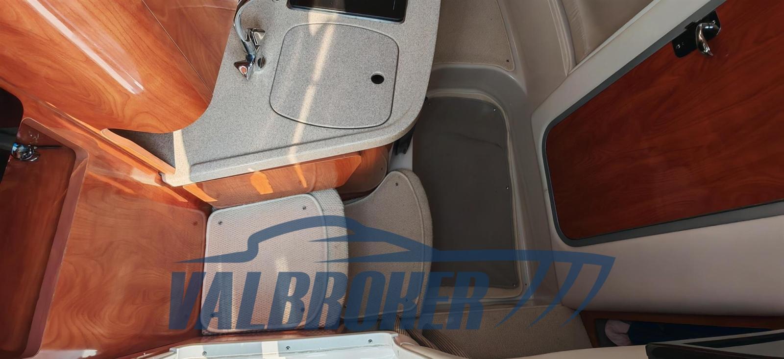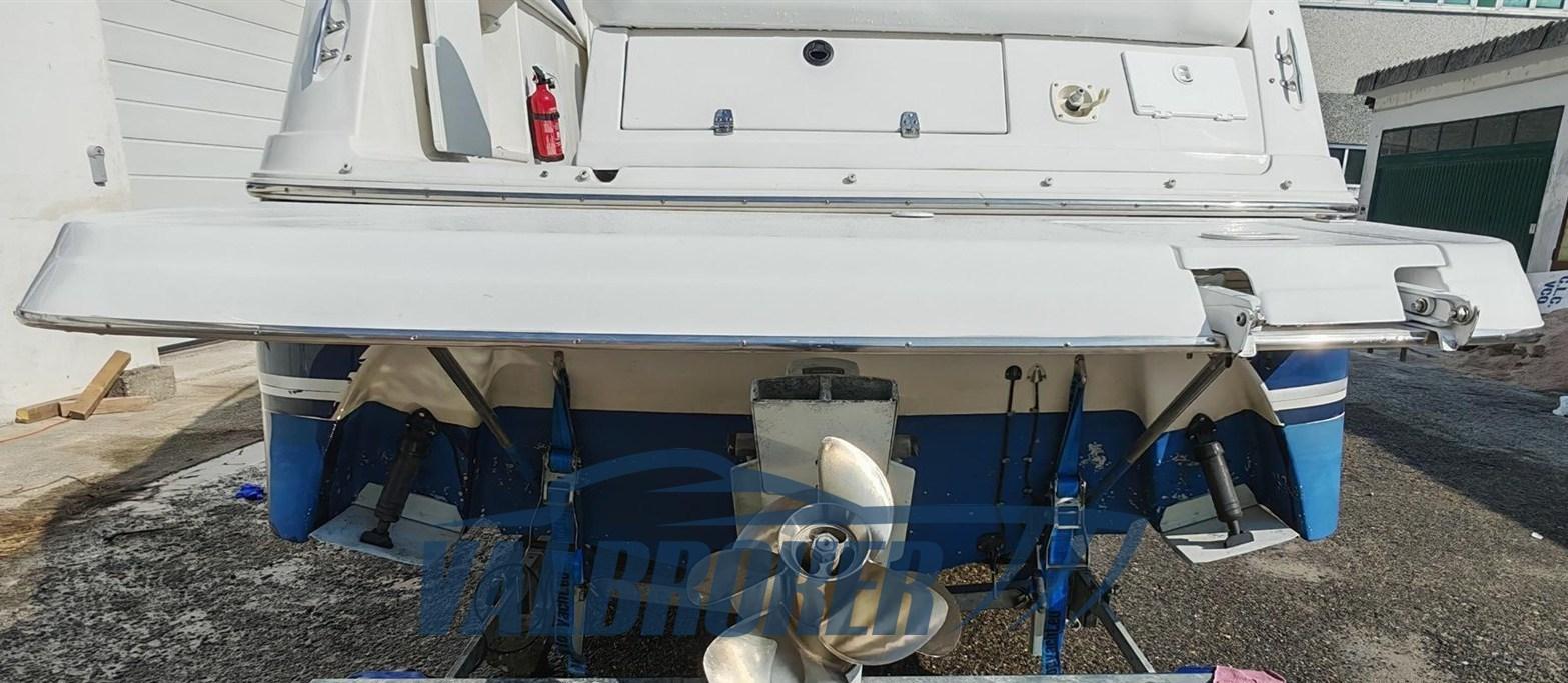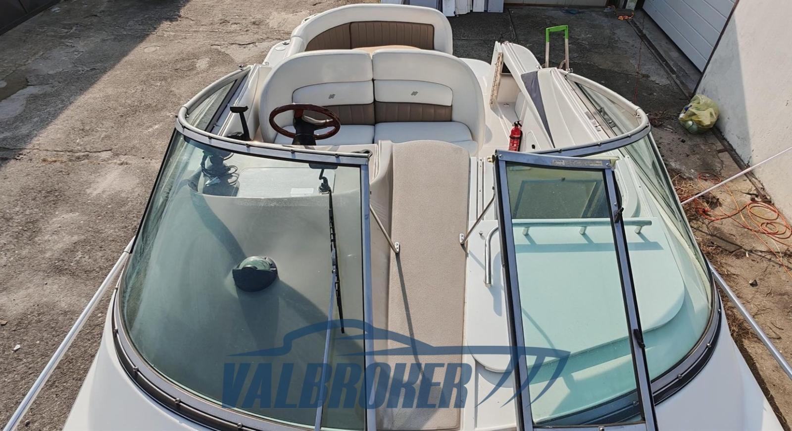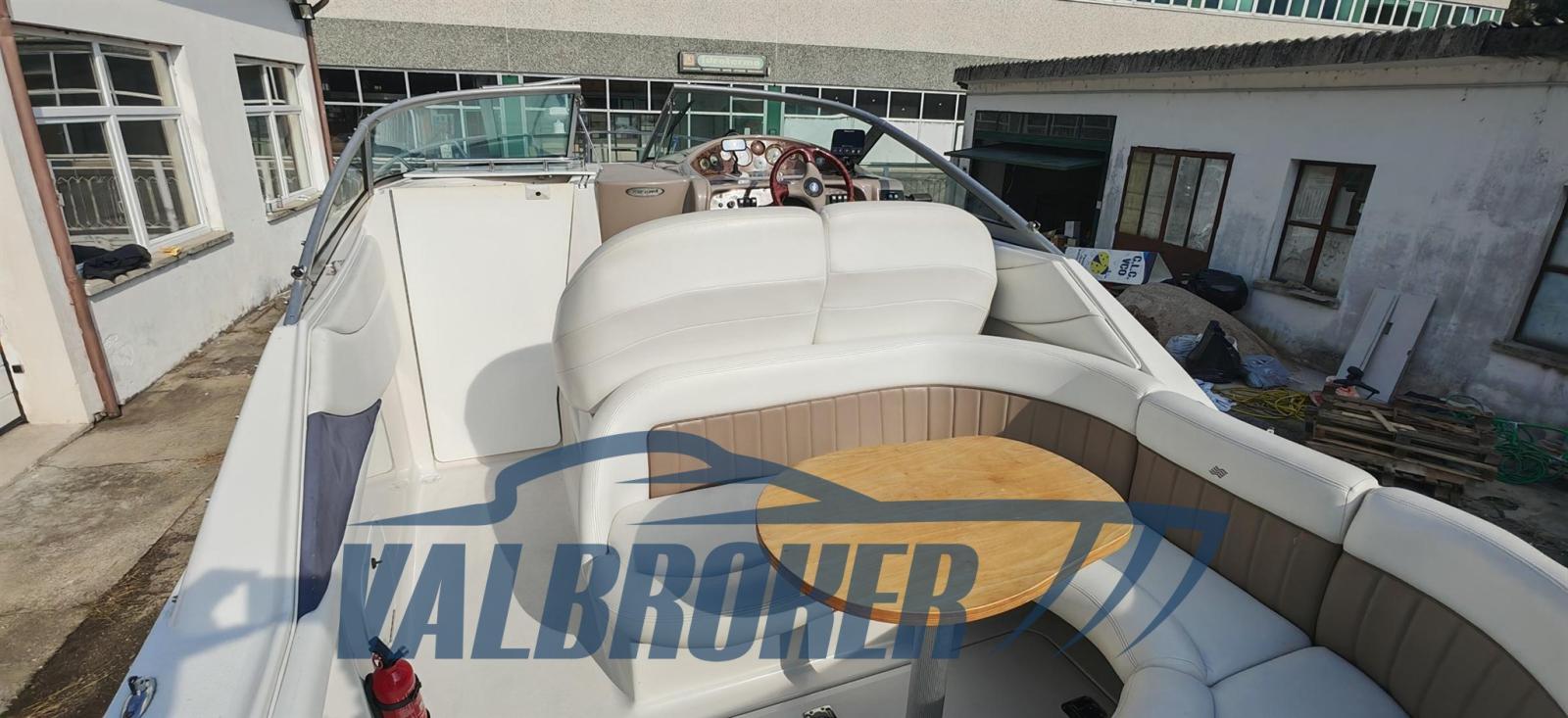 Cabin cruiser from the renowned American shipyard Four Winns. Used only on lakes. 1 x 280 HP Volvo Penta 5GXi V8. Cockpit with dinette and dining table. Large swim platform. Open-plan cabin with dinette convertible into a double bed in the bow and a double bed in the stern. Separate bathroom with toilet, stainless steel sink, and shower. Perfectly maintained. Ready to sail. April 2025: hull stripped to bare metal, old layers of antifouling removed with sandblasting, preventive acqua-stop treatment, epoxy primer, 2 coats of antifouling, new magnesium anodes, and full engine service. Viewable at Valbroker.
