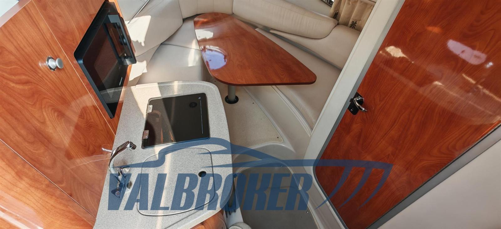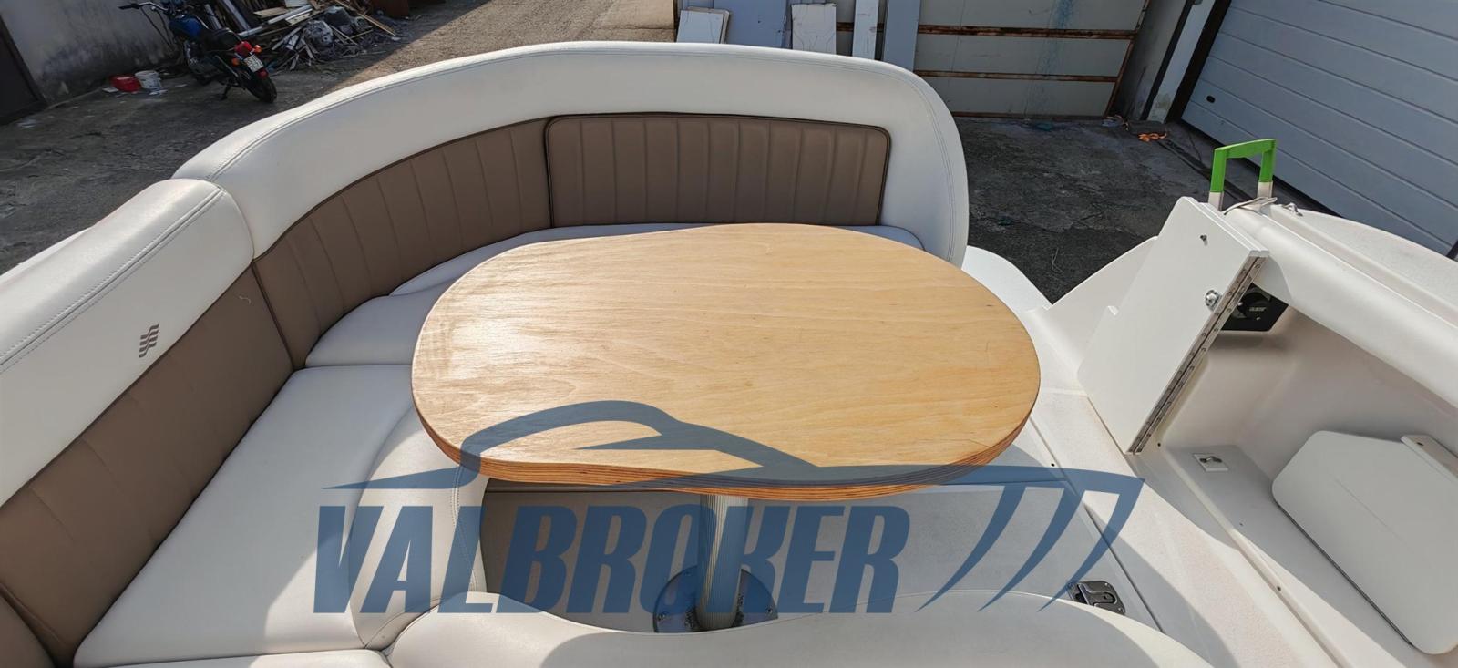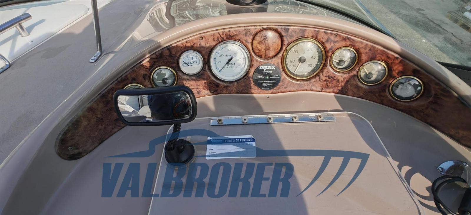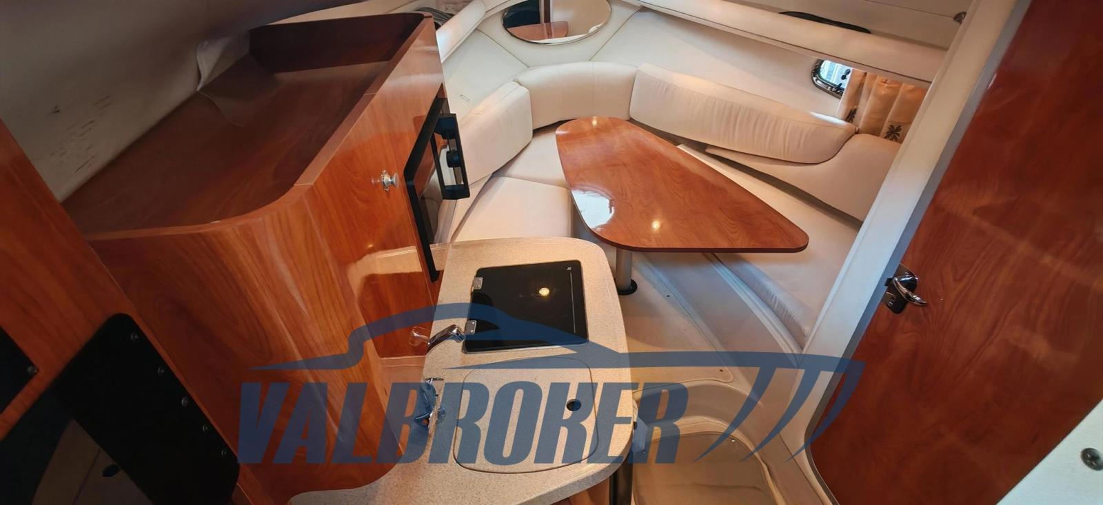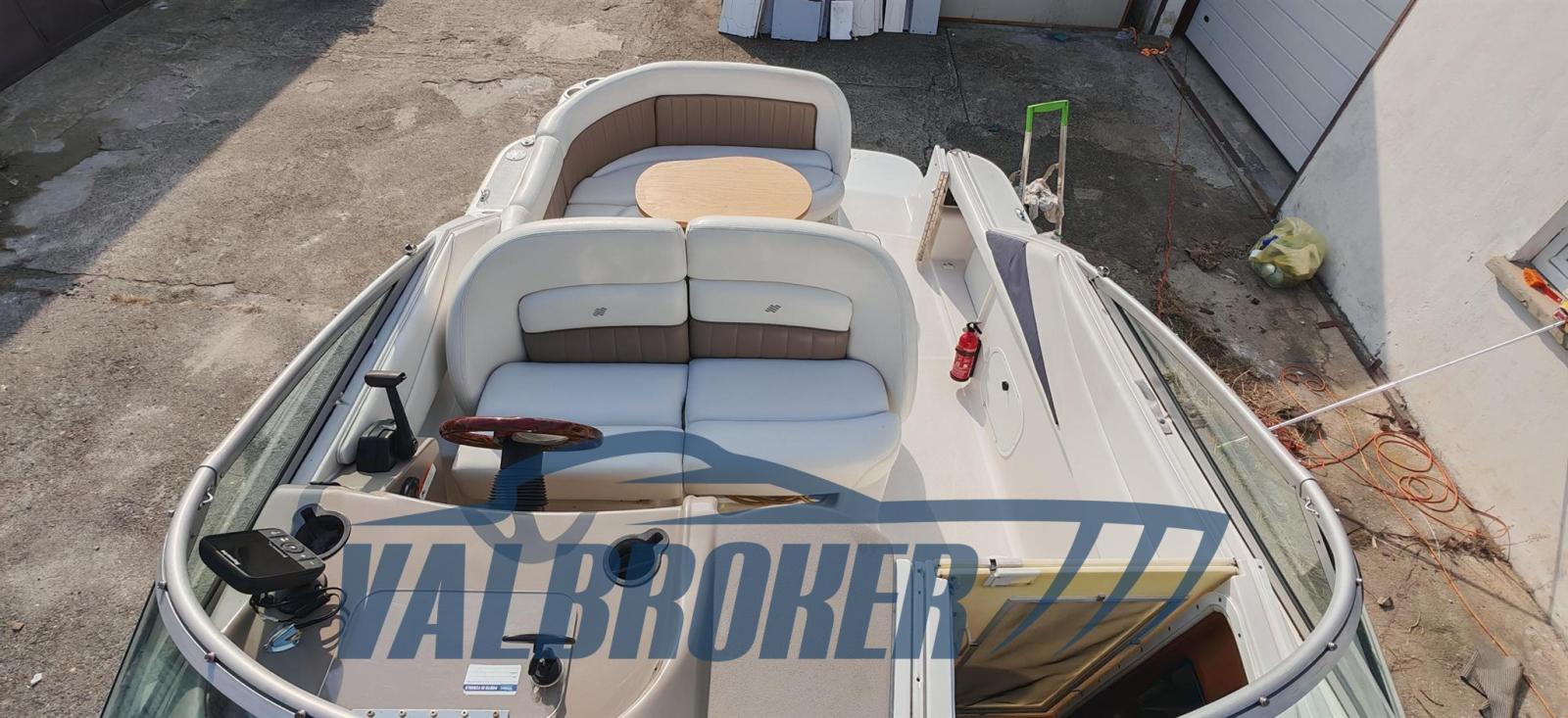 Cabin cruiser from the renowned American shipyard Four Winns. Used only on lakes. 1 x 280 HP Volvo Penta 5GXi V8. Cockpit with dinette and dining table. Large swim platform. Open-plan cabin with dinette convertible into a double bed in the bow and a double bed in the stern. Separate bathroom with toilet, stainless steel sink, and shower. Perfectly maintained. Ready to sail. April 2025: hull stripped to bare metal, old layers of antifouling removed with sandblasting, preventive acqua-stop treatment, epoxy primer, 2 coats of antifouling, new magnesium anodes, and full engine service. Viewable at Valbroker.