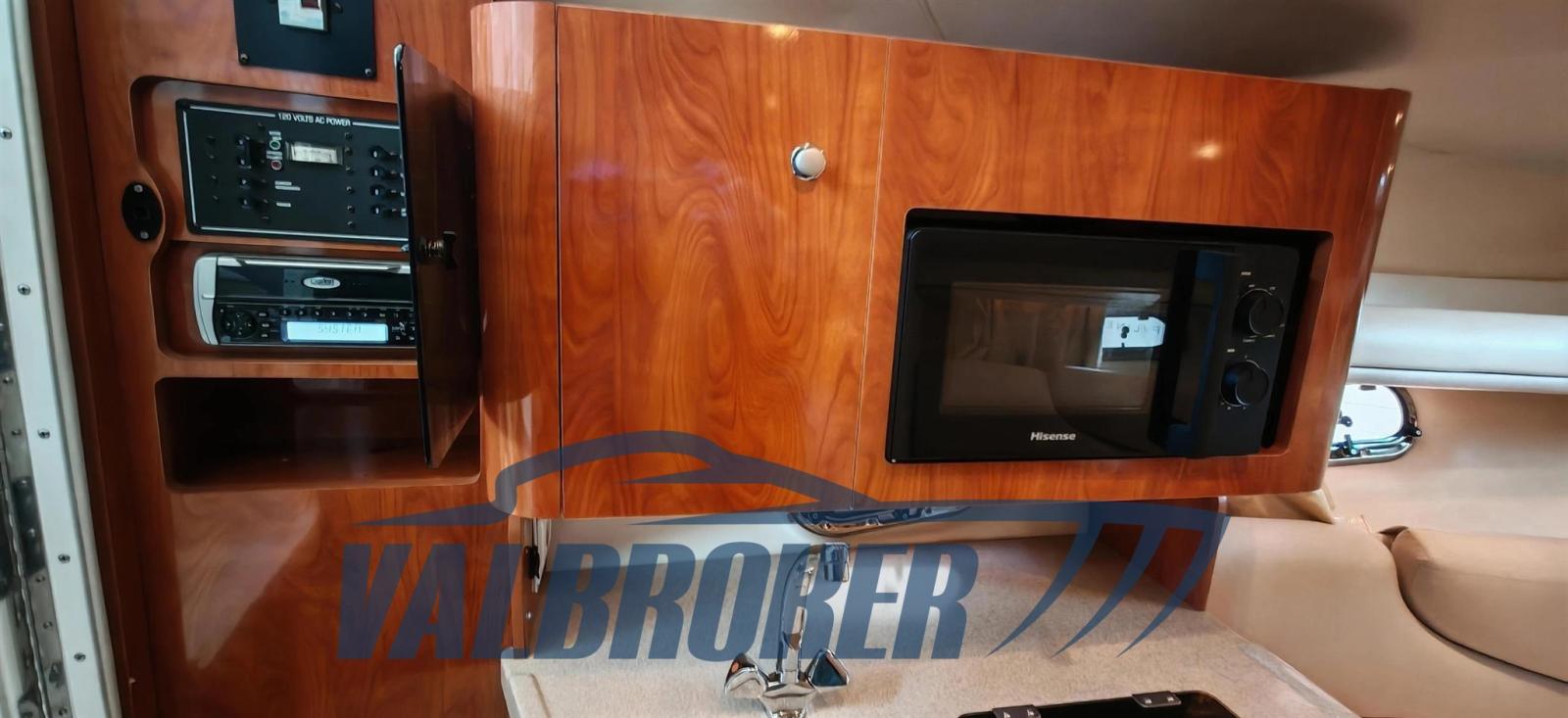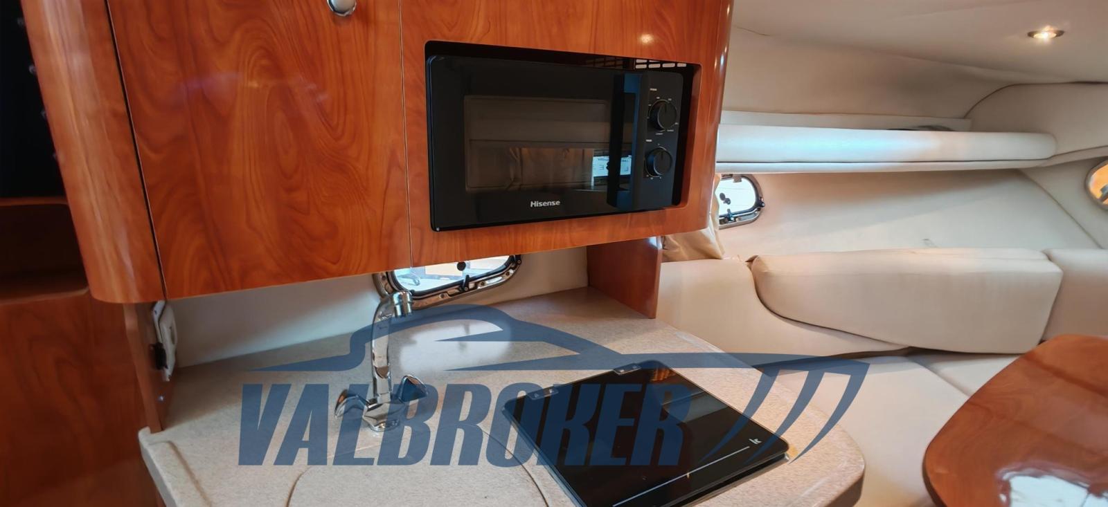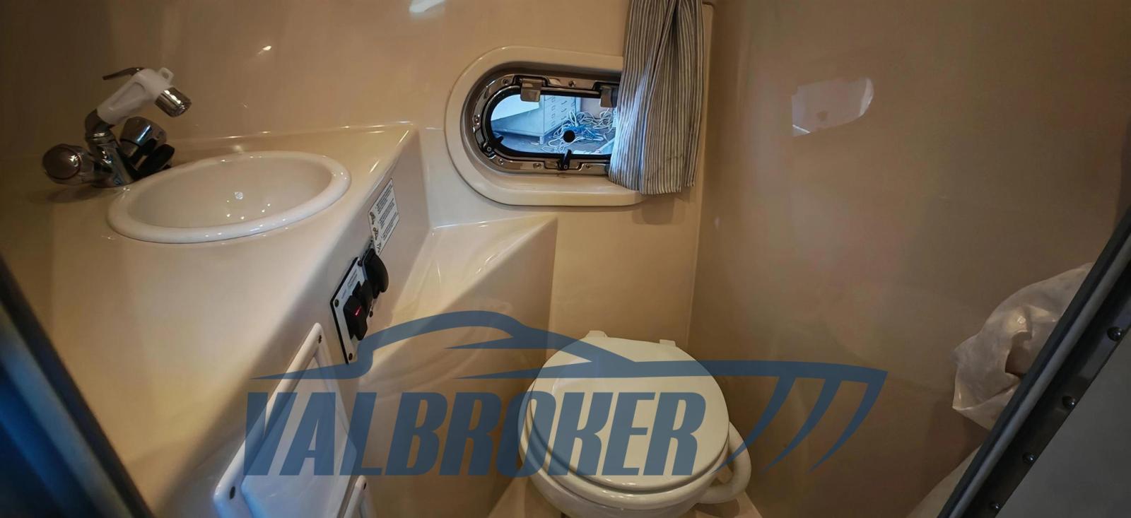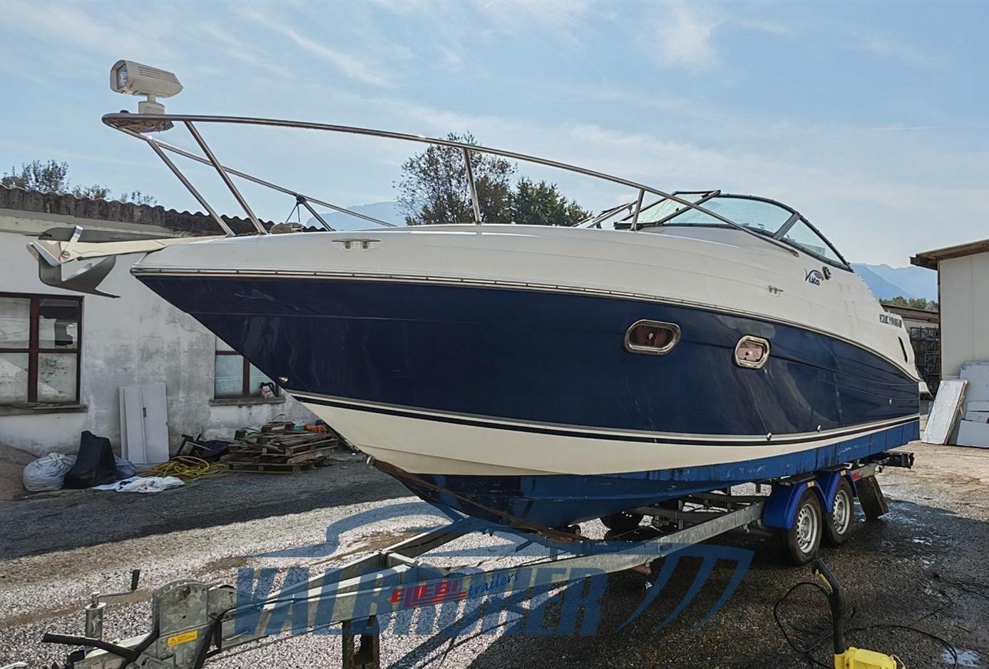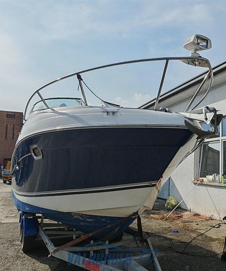 Cabin cruiser from the renowned American shipyard Four Winns. Used only on lakes. 1 x 280 HP Volvo Penta 5GXi V8. Cockpit with dinette and dining table. Large swim platform. Open-plan cabin with dinette convertible into a double bed in the bow and a double bed in the stern. Separate bathroom with toilet, stainless steel sink, and shower. Perfectly maintained. Ready to sail. April 2025: hull stripped to bare metal, old layers of antifouling removed with sandblasting, preventive acqua-stop treatment, epoxy primer, 2 coats of antifouling, new magnesium anodes, and full engine service. Viewable at Valbroker.
