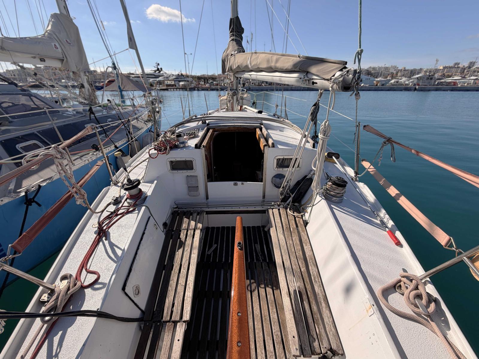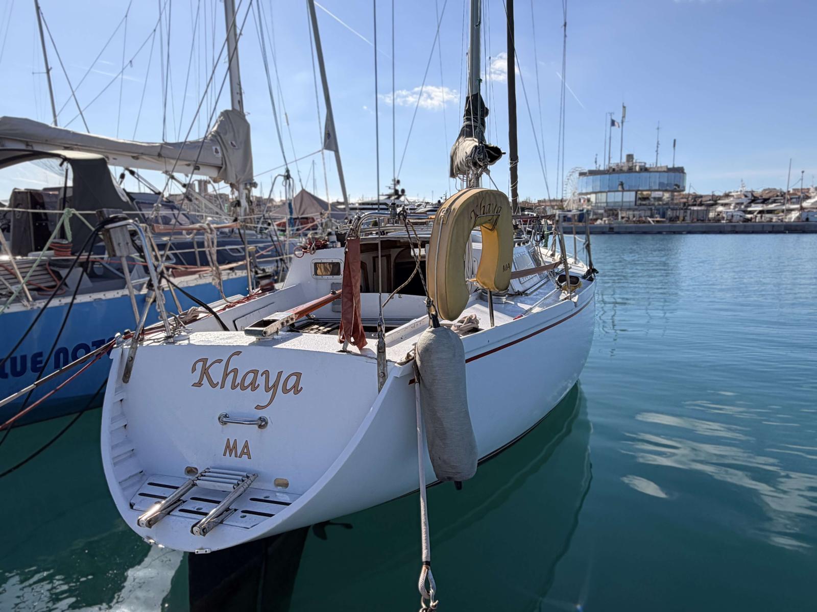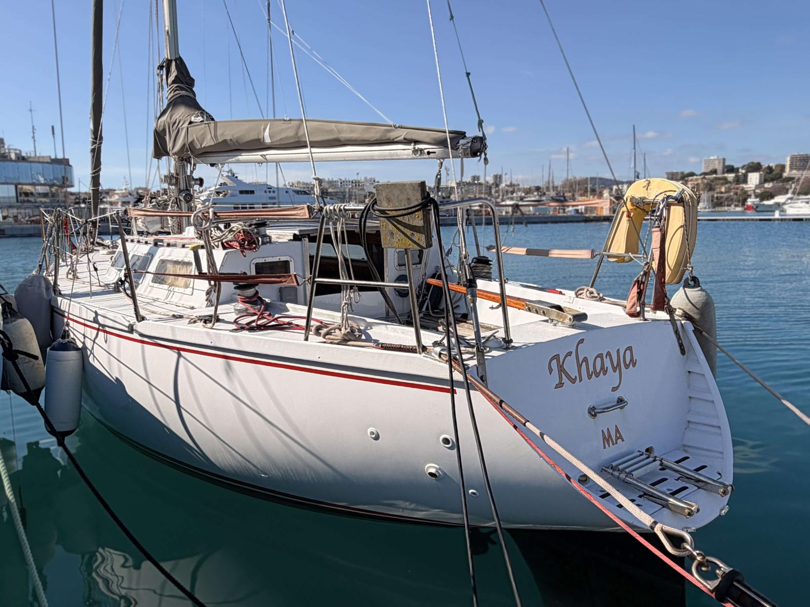 Built as a carefully crafted amateur construction in Marseille in 1985, Khaya is a cruiser-racer type sailing yacht whose epoxy cold-moulded wooden hull reflects solid craftsmanship and provides reassuring seaworthiness. Featuring a deep fin keel combined with a separate rudder, she offers precise and responsive handling at the helm. Her low and slender lines give her an elegant silhouette, characteristic of yachts from her era.