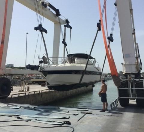 Engine Alarm, Water pressure pump, 3 Batteries (nuove 2023), Deck Shower, 2 Hydraulic Flaps, Flaps Indicators, Washbasin in the cockpit, Courtesy Lights, Gangway (idraulica), Platform (in flexiteek 2025), Automatic Bilge Pump, Entry door, Shorepower connector, Water harbor connector system, Voltage Rectifier, Rollbar, Electric Windlass, swimming ladder, cockpit table, Living Room Foldable Table, Horn.