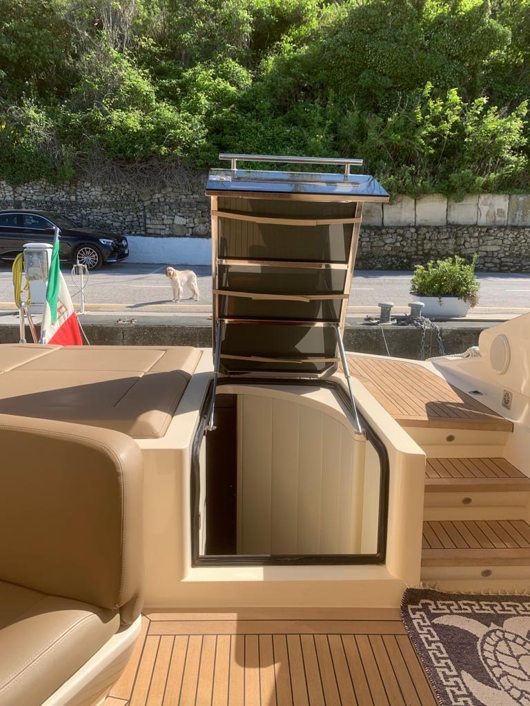 Engine Alarm, 2 Water pressure pump, 11 Batteries, Battery charger (nuovo 2022), Deck Shower, Stern Thruster (revisionata 2022), Bow Thruster (nuova 2021), Directional Spotlight, Hydraulic Flaps, Hard top, Flaps Indicators, Washbasin in the cockpit, Courtesy Lights, Underwater lights, Gangway (besenzoni), Platform, Automatic Bilge Pump, Entry door, Teak Cockpit, Shorepower connector, Water harbor connector system, Voltage Rectifier, Electric Windlass, swimming ladder, cockpit table, Horn.