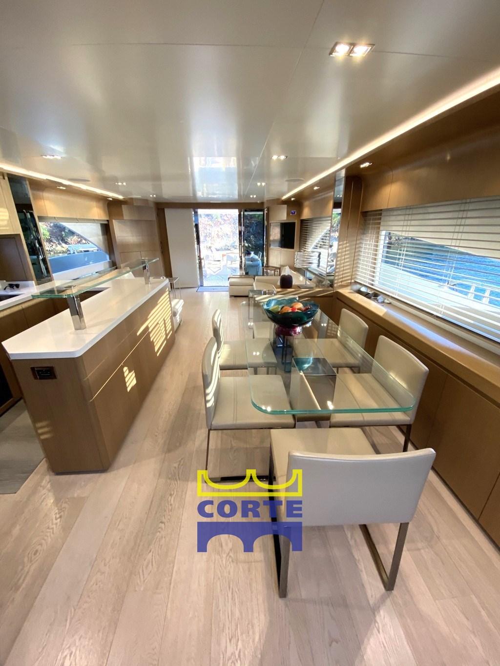 BBQ/Grill (fly Whirpool), Warm Water System, Safe, Inverter Air Conditioning (Condaria by Dometic anche nel pozzetto), Watermaker (Idromar 200 litri ora), Waste Water Plant, Interior wooden floor, 12V Outlets, 220V Outlets, Black Water Tank, Video camera, Electric Toilet.