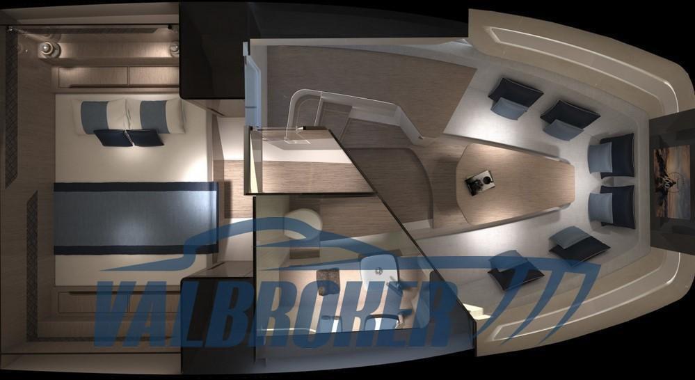 Anchor (8mm, con 30 m catena inox), Teak Side Decks, Special Colour (Grigio Chiaro con linea graffite), Deck Shower, Platform (elettrica), Teak Cockpit, Shorepower connector, swimming ladder, cockpit table (elettrico che si trasforma in prendisole).