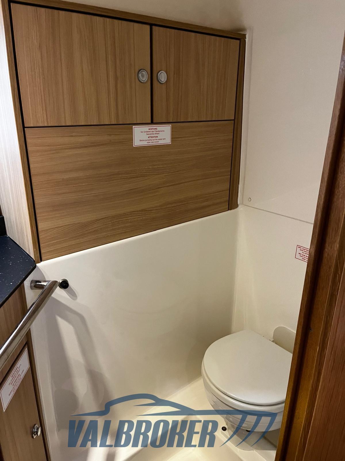 Auto Dynamic Trim Interceptor (Zipwake), Water pressure pump, Deck Shower, Bow Thruster (Side Power), Washbasin in the cockpit, Platform (teak), Teak Cockpit, Shorepower connector, Rollbar, Electric Windlass, swimming ladder, cockpit table.