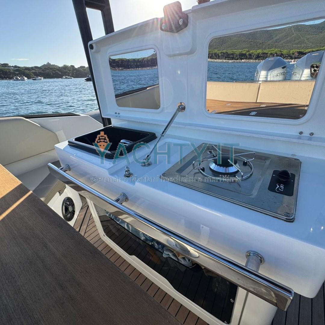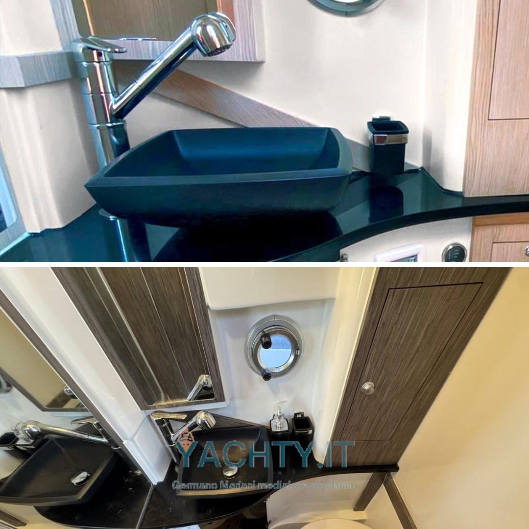 Washbasin in the cockpit, 3 Automatic Bilge Pump, Teak Cockpit, Electric Windlass, swimming ladder, cockpit table, T-Top (con vetro paronamico).