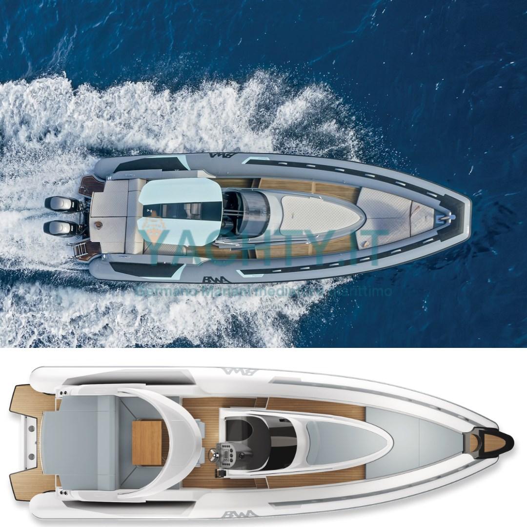 Powered by 2 x 350 hp Honda V8s, it represents the most advanced expression of the sporty maxi-RIB: high performance, stable navigation and great safety even at high speeds, combined with surprising on-board comfort.