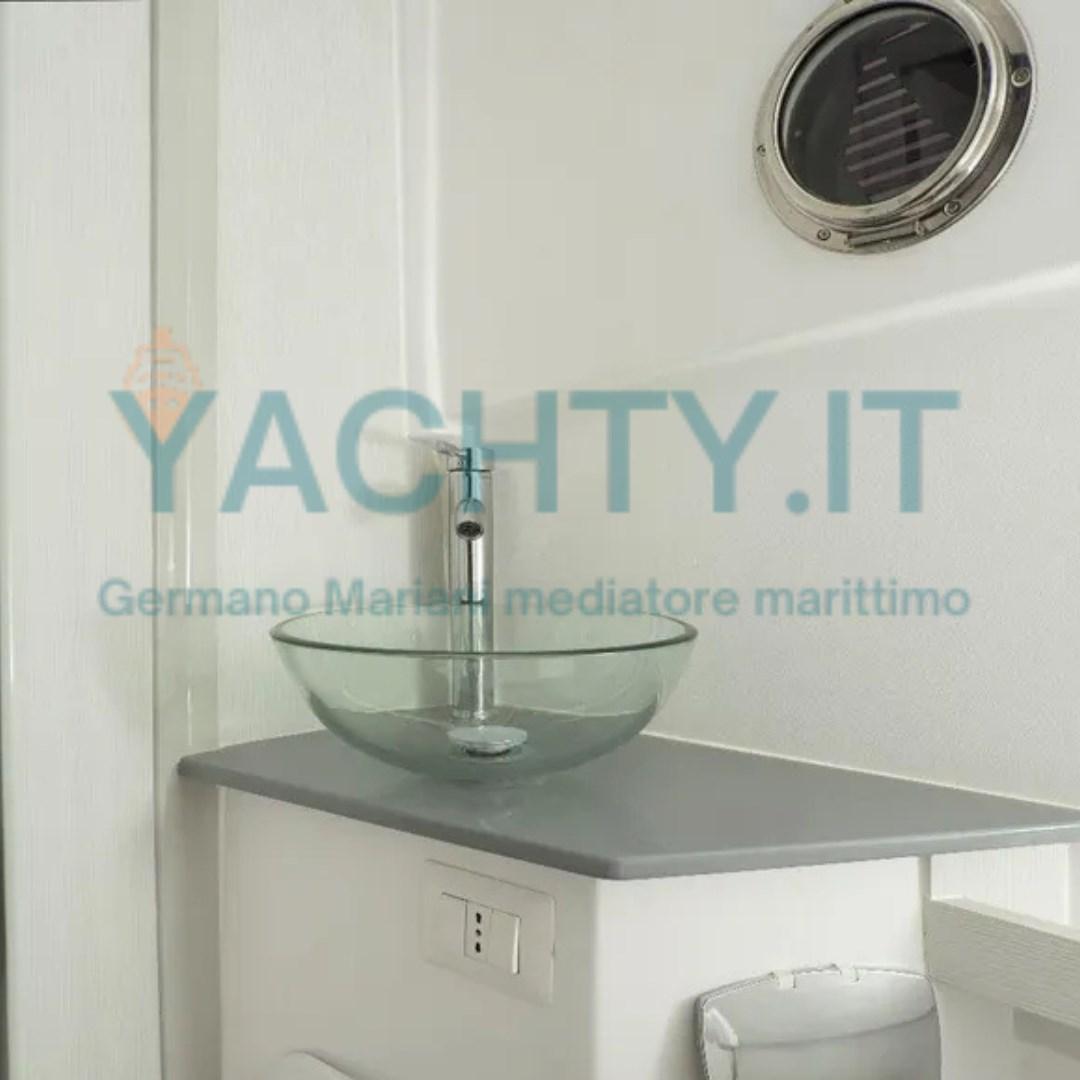Anchor (aggiuntivo prua salpa ancora), 6 Batteries (430 CD), Directional Spotlight (T-top), Courtesy Lights (pozzetto, gavone motore e prua), Underwater lights (Led Murate), Teak Cockpit (teak sintetico), Shorepower connector, swimming ladder (a scomparsa extra), T-Top.