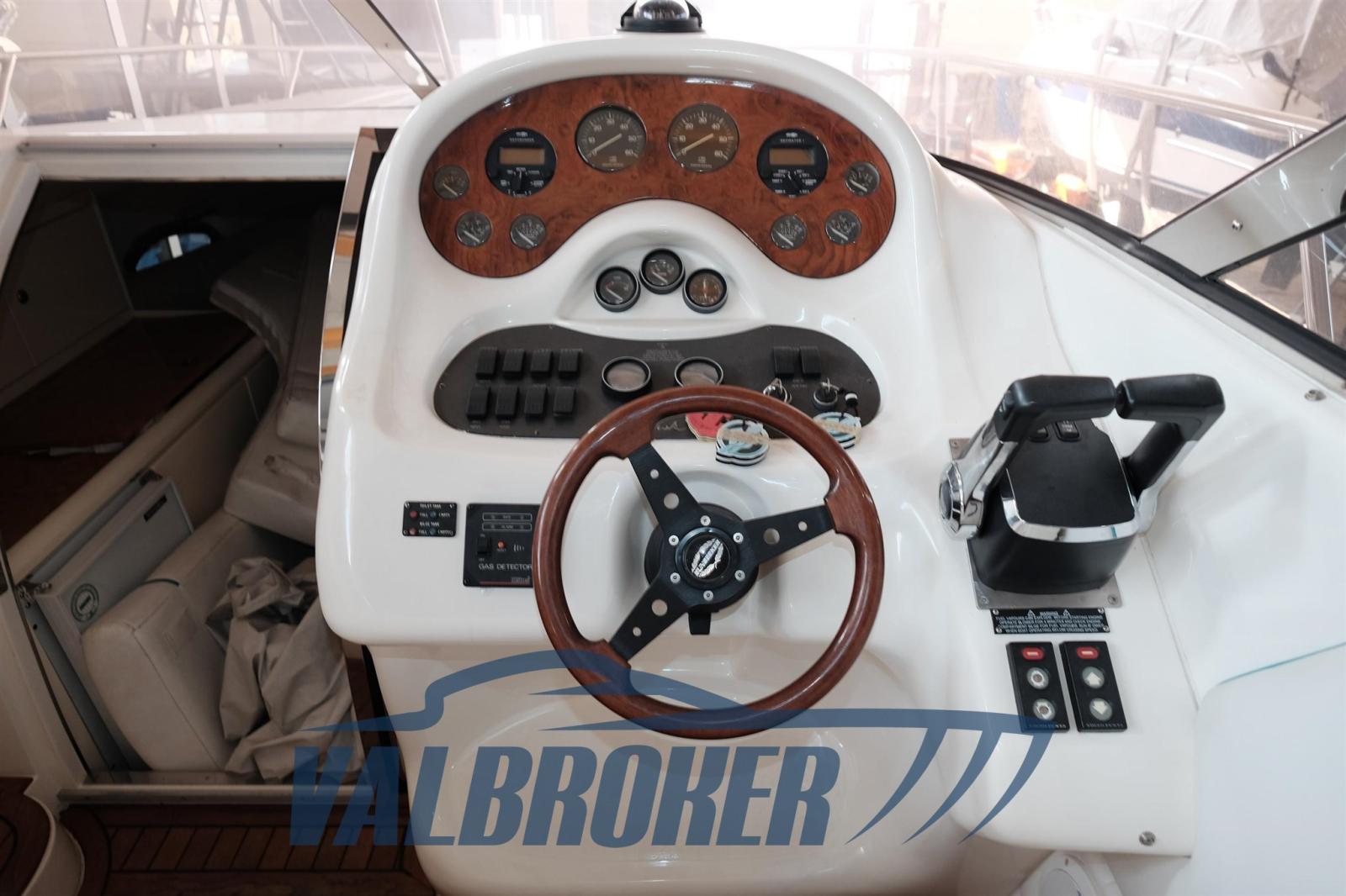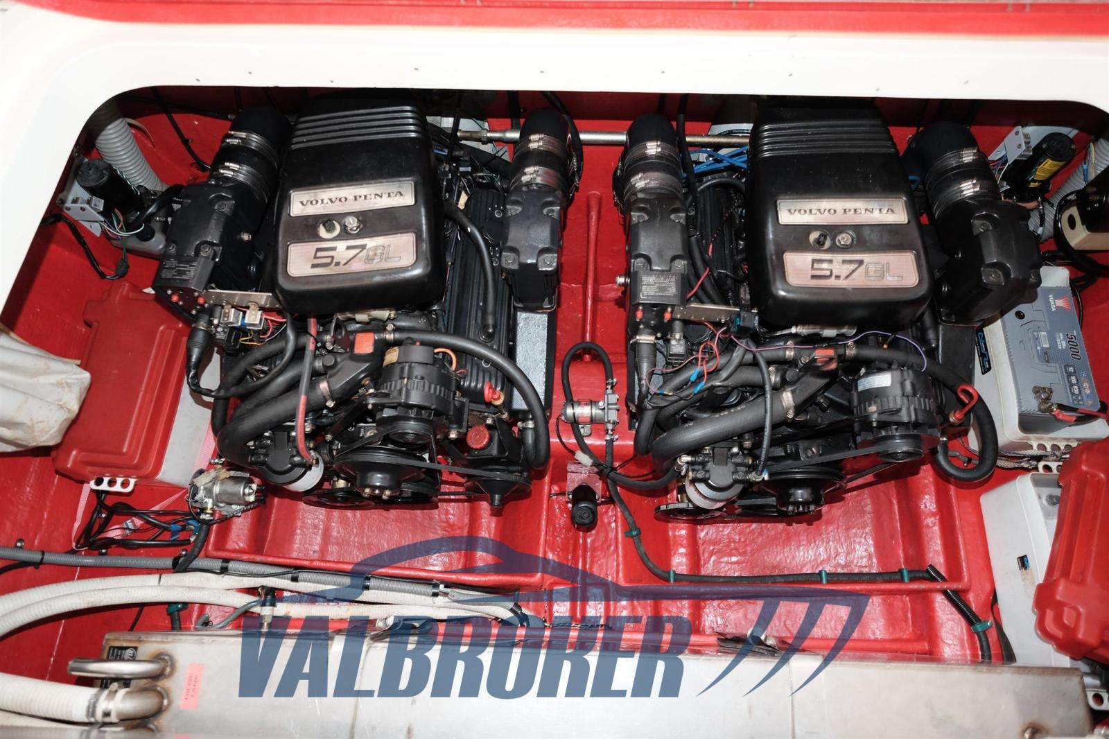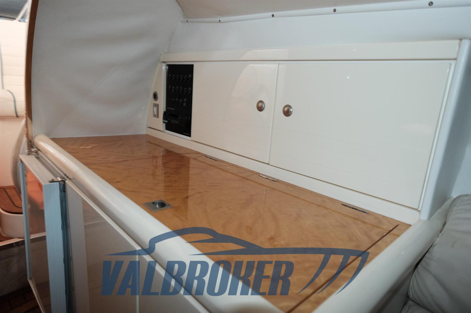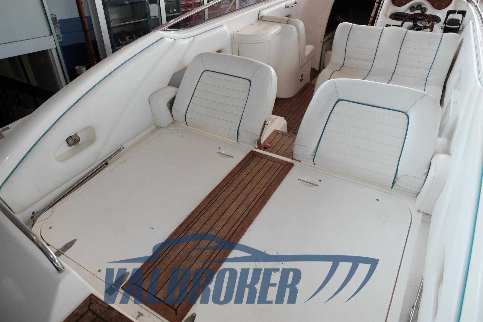 Practical and manoeuvrable day boat with an attractive look. A beautiful example of the English shipyard that best expresses sportiness and quality over time. Used Lake Maggiore. Fully functional. Teak cockpit, original grain leather interior dinette, briar wood interior furniture. Double fixed sundeck at the stern. Powered by 2xVolvo Penta 5.7 GL V8 petrol. 2022: transmission maintenance. 2024: Replaced fuel tank.